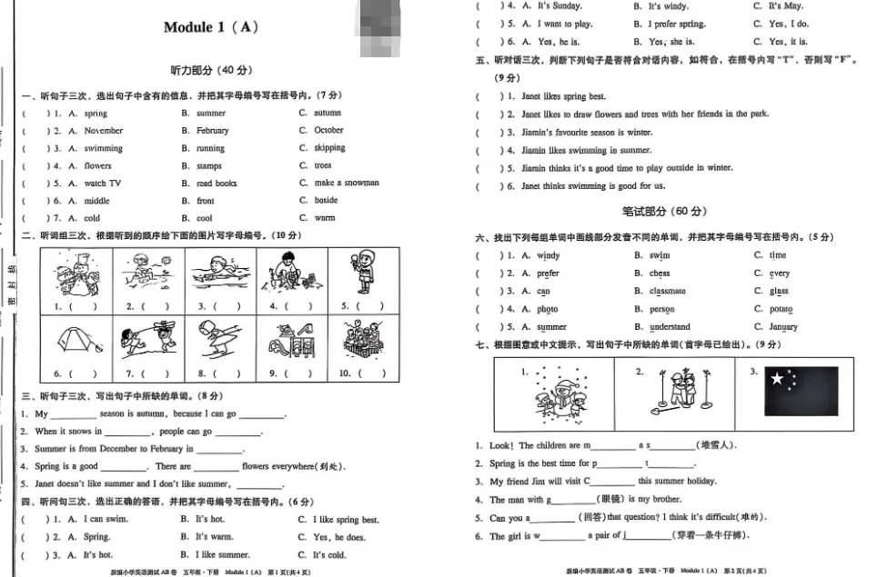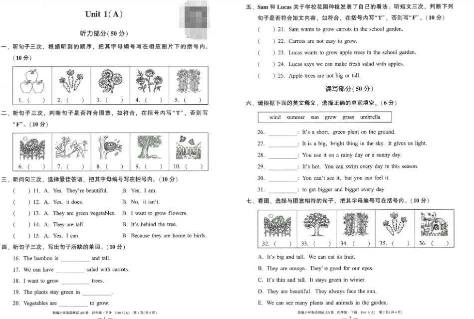 2026春四五六年级下册广州教科版英语测试AB 卷!电子版!可下载打印!