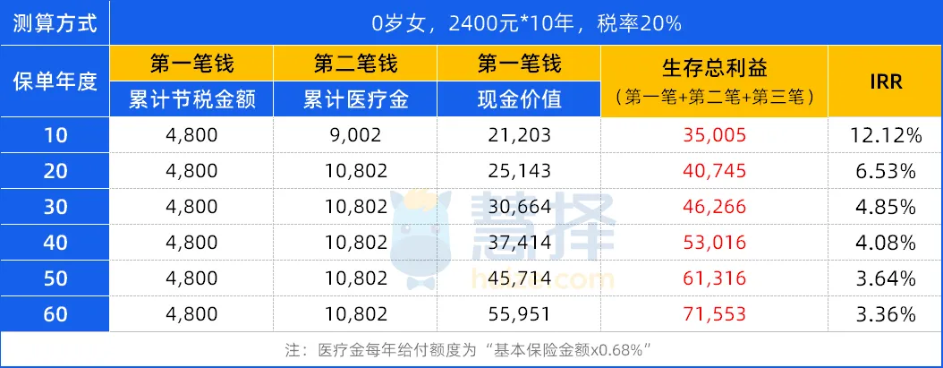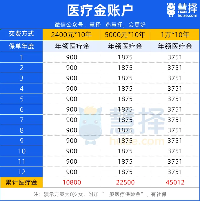 那前面已经聊过每年能节税的金额,下面重点说说【医疗金】和【现金价值】。