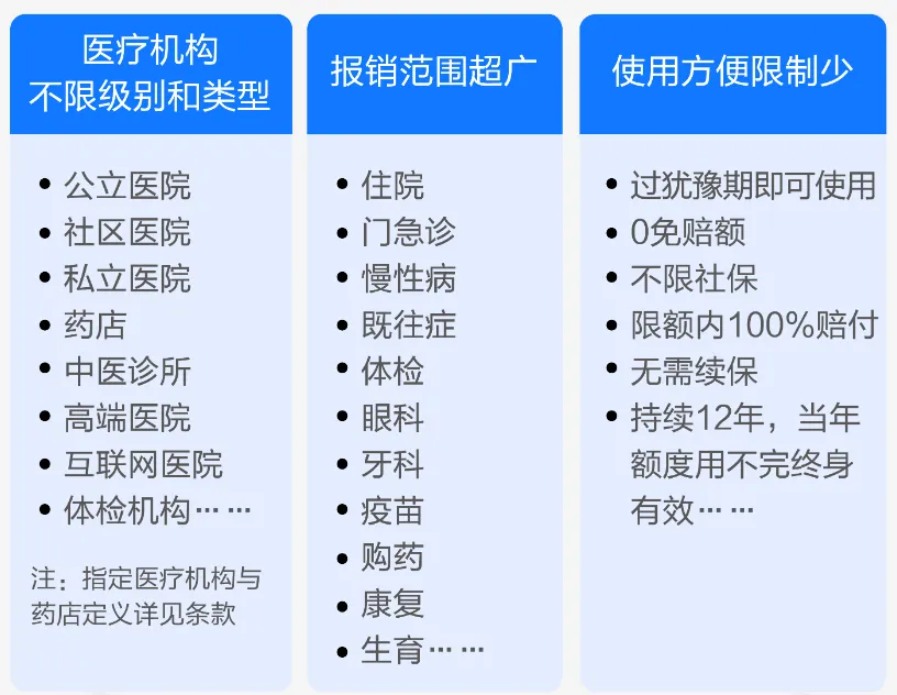 它就相当于一份,没有任何报销限制的医疗险,精准解决所有日常医疗开销,实用性拉满。