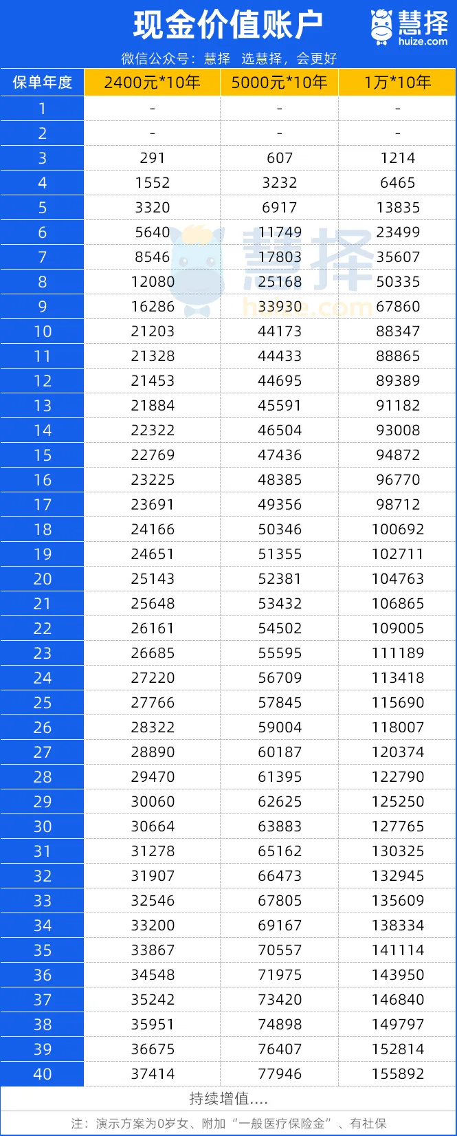 如果想知道自己的情况投保,每年有多少收益、现金价值是多少,直接点这里>>免费测算、咨询。