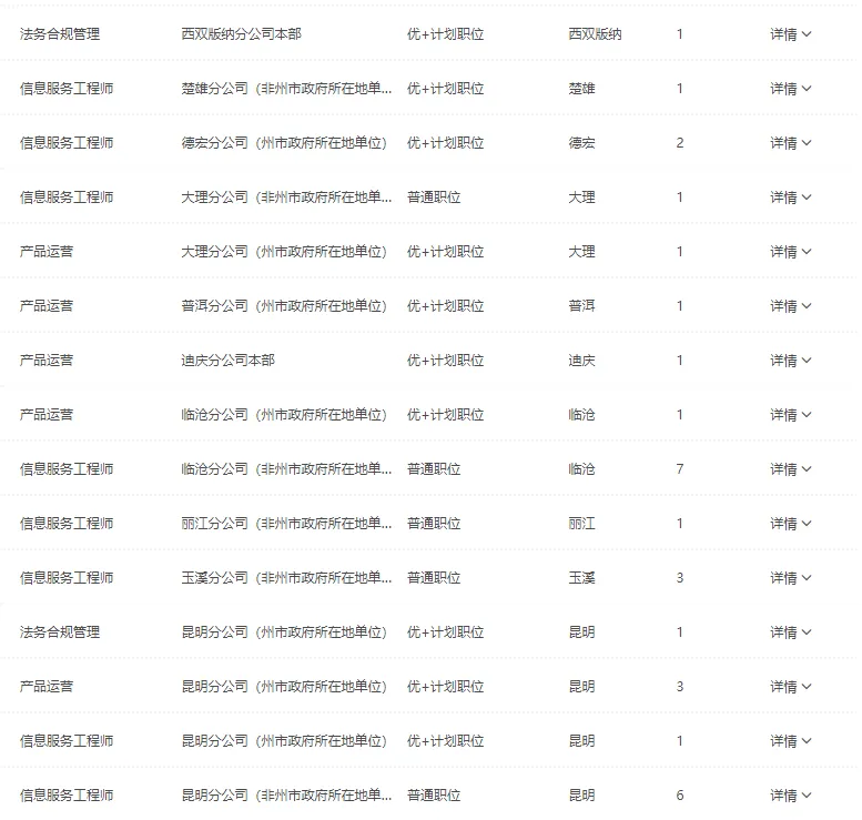 省公司和16个州市分公司(州府所在地单位和非州府所在地单 位)有招聘需求,职位包括: