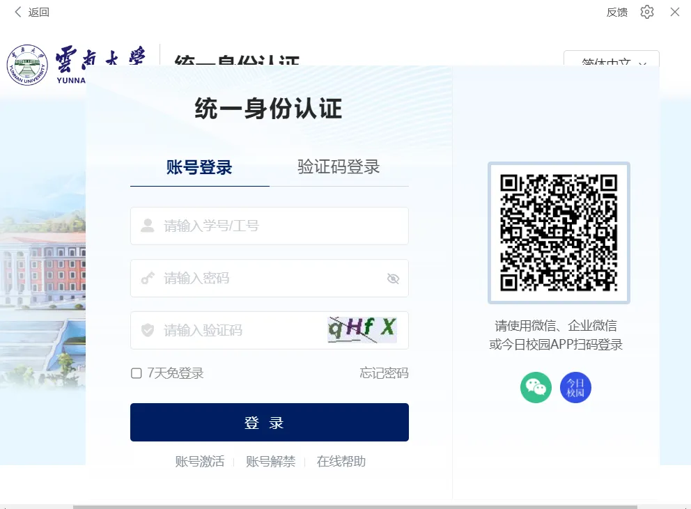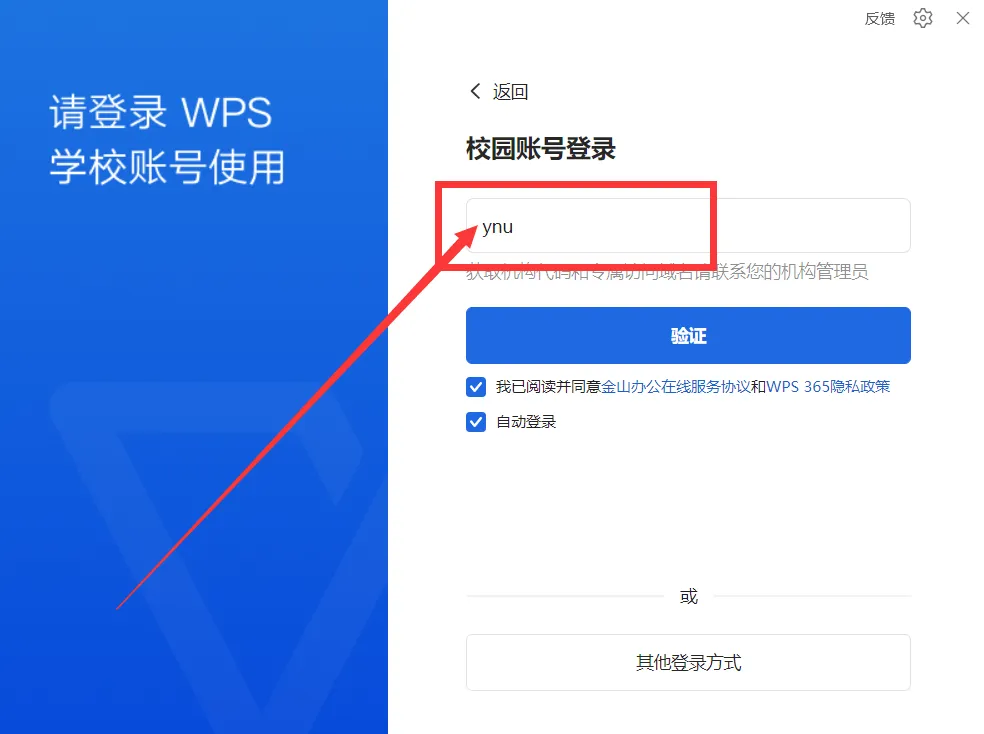 (3)打开WPS Offie客户端,登录学校账号:选择“sso”方式登录——输入学校专属代码ynu/云南大学——跳转到统一身份认证界面验证后即可登录👇