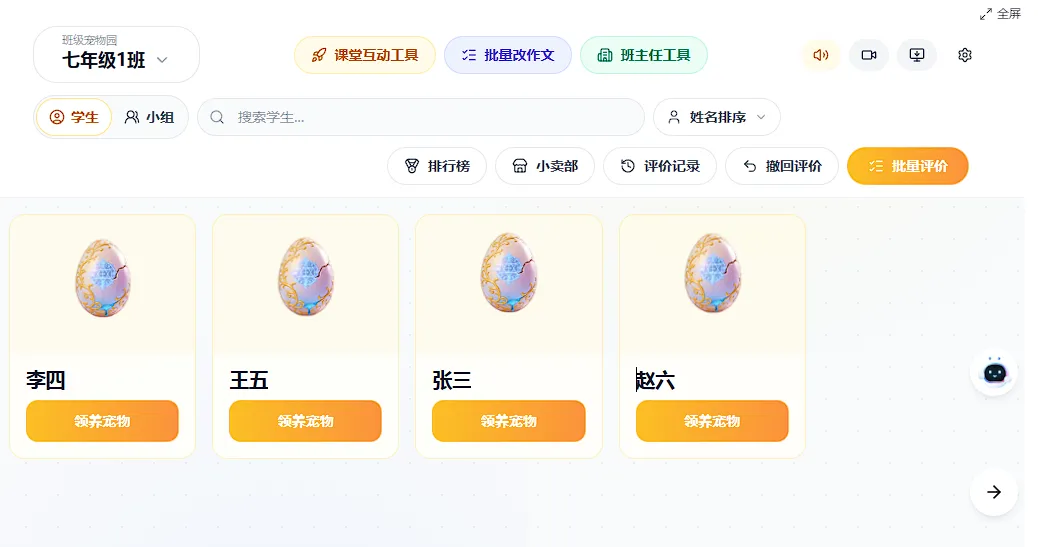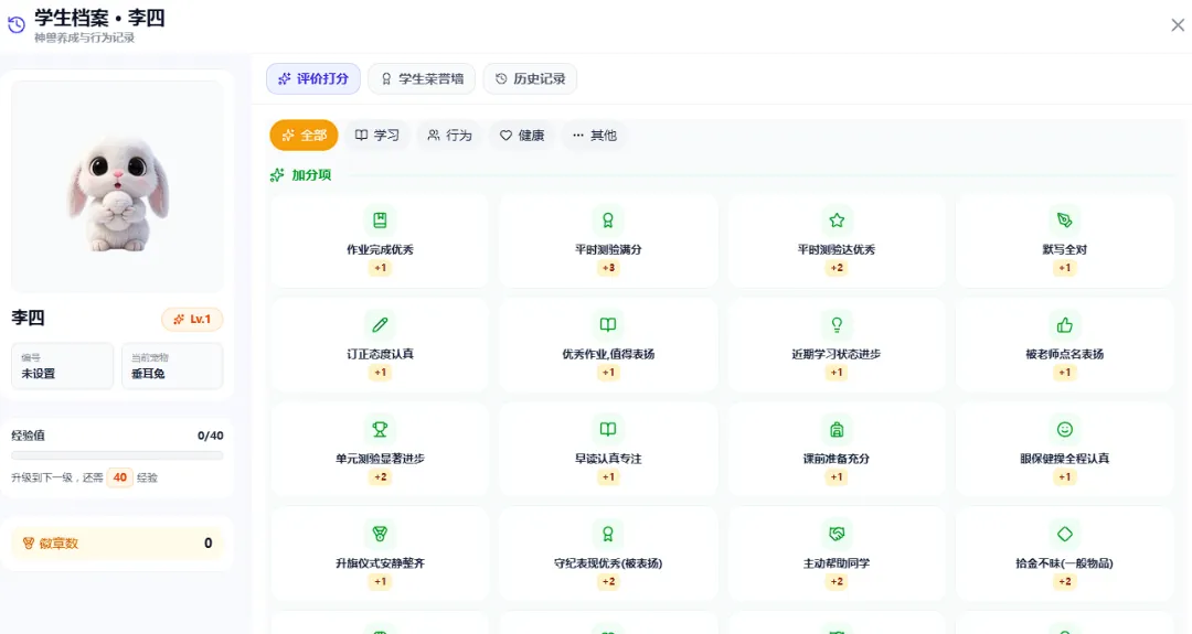 领养之后,就可以根据学生的表现进行奖惩了,是不是很有趣呢?
