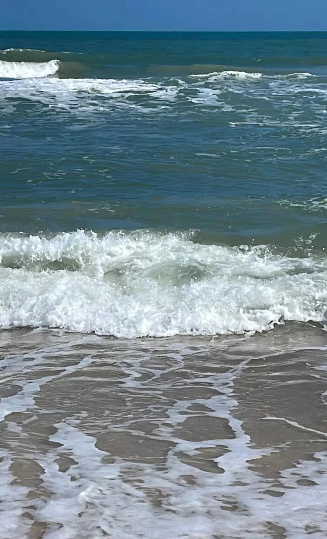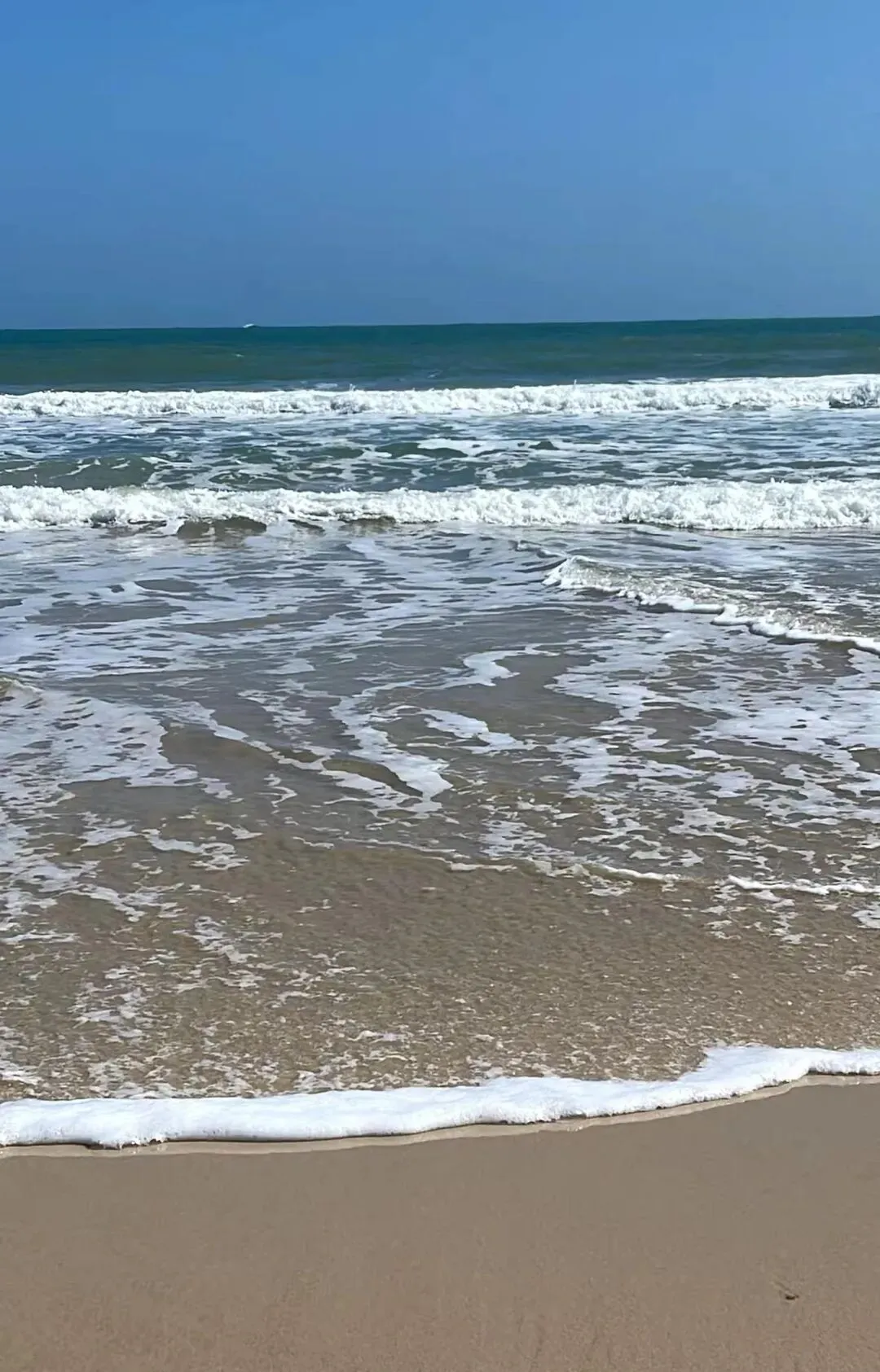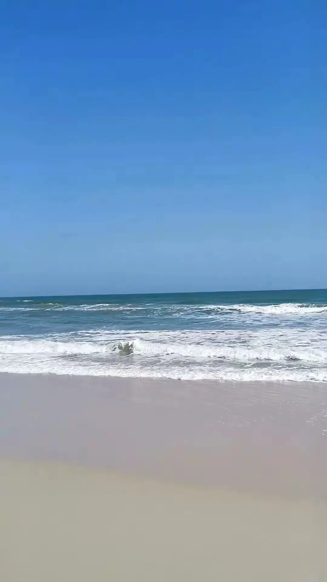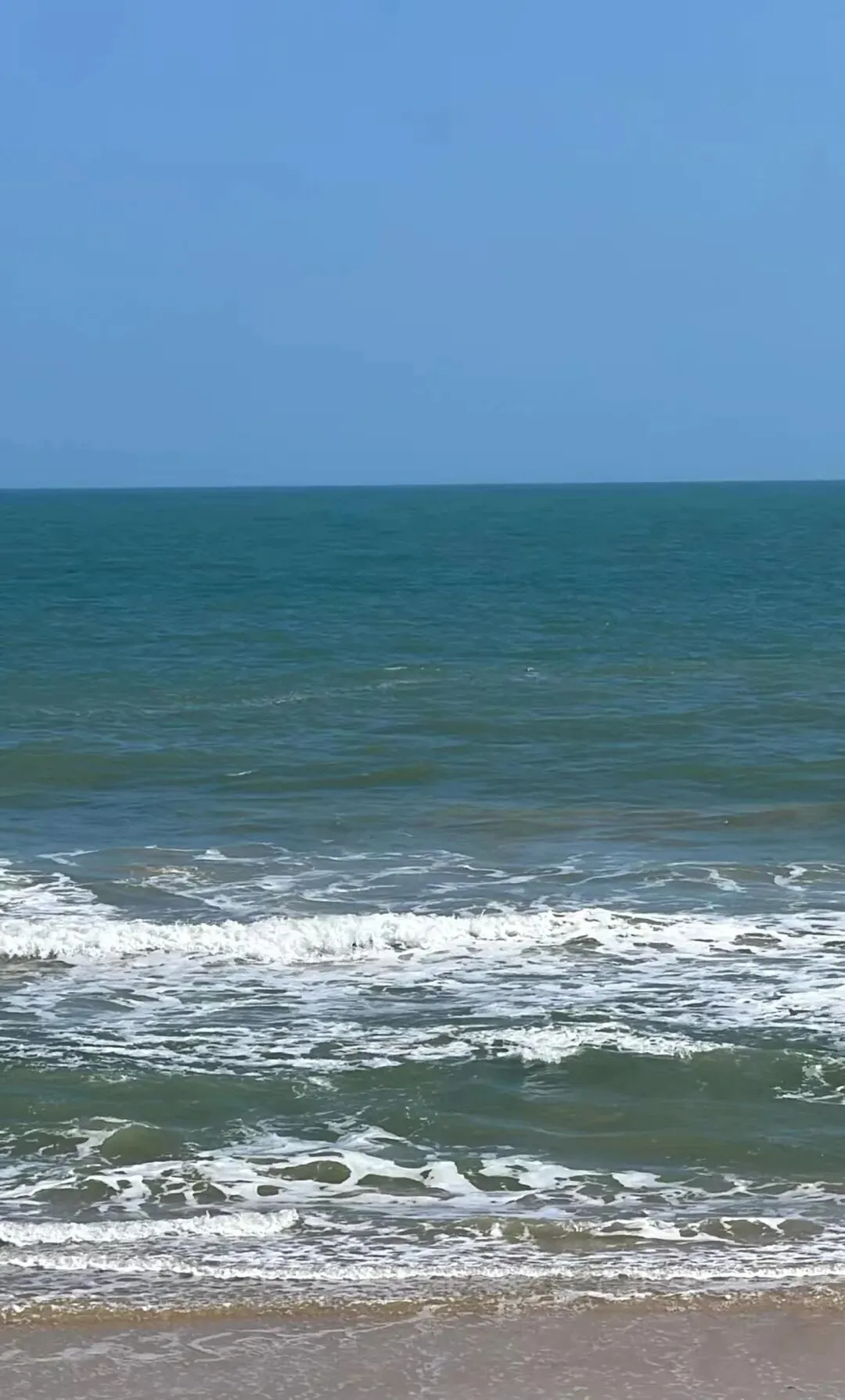 第一眼看到风车群,那种震撼很难用语言形容。每一台风机都有几十米高,洁白的塔身在阳光下闪着金属光泽。巨大的叶片缓缓转动,在海面上投下流动的影子。这里的海不是三亚那种温柔的蓝,而是带着一点墨色的深蓝。海浪很大,一波接一波地拍打着礁石,发出轰隆的巨响。海水在阳光的照射下呈现出蓝宝石般的质感,波涛汹涌却又透着一种深邃的宁静。