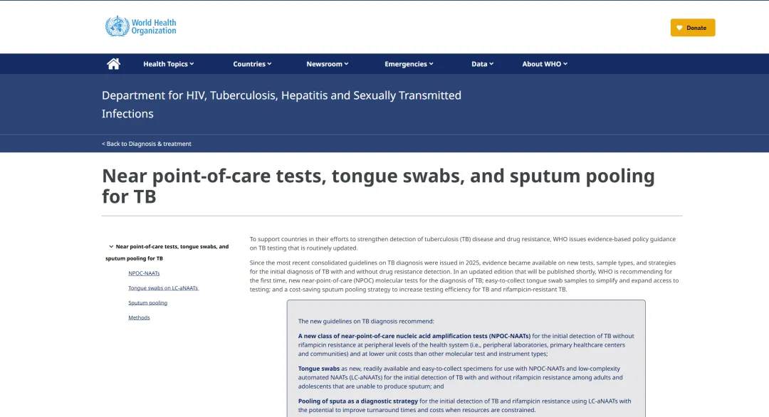 更新一:近床旁核酸扩增检测作为一种新的诊断分类,用于基于痰液和舌拭子样本的结核病诊断