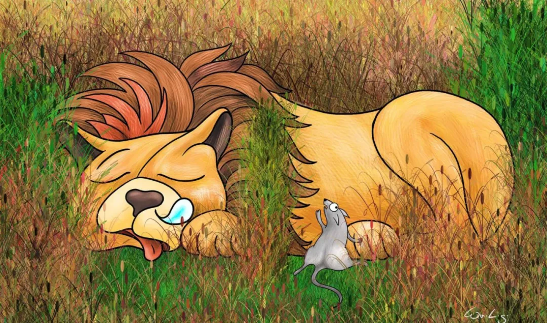 1. 一只狮子饱后犯睏酣睡如泥,一只小老鼠误闯而入……