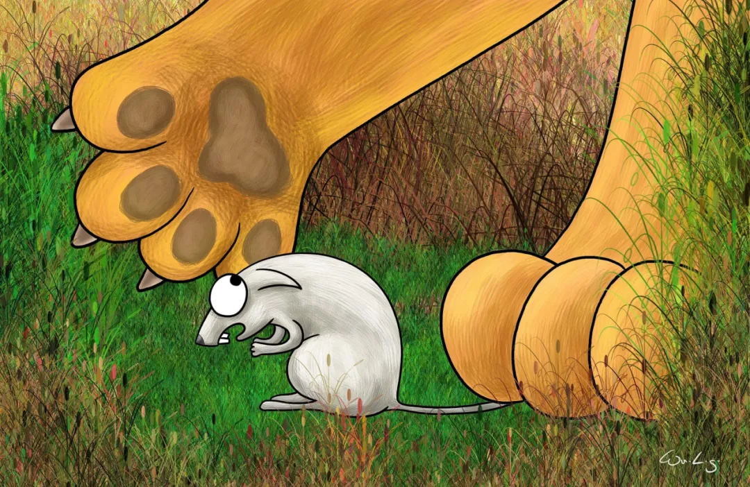 小老鼠求饶:「狮子大大,饶了我吧!总有一天我会报答你的!」