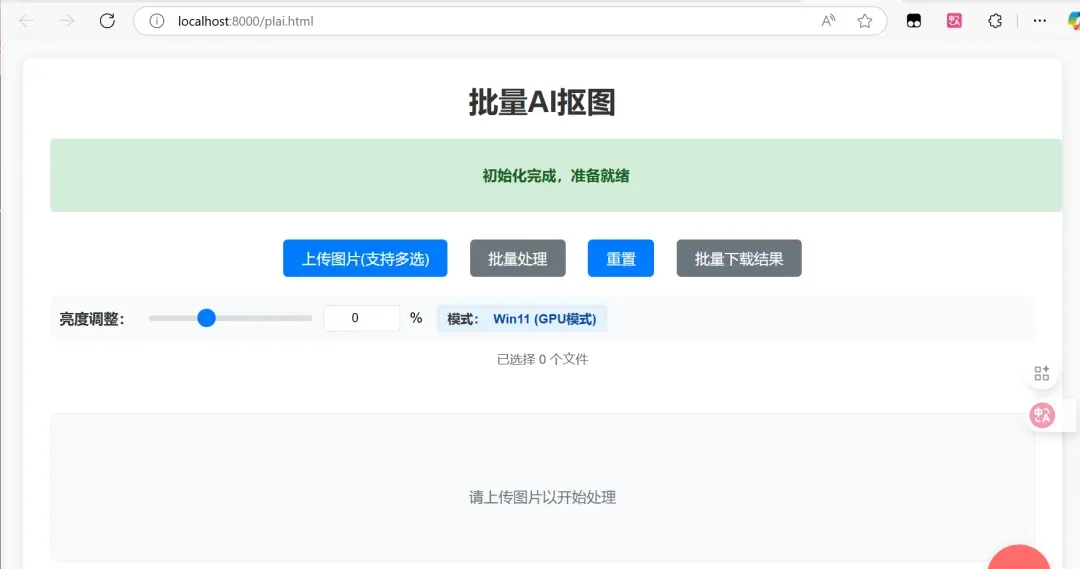 软件打开后默认跳转浏览器地址:http://localhost:8000/plai.html,若出现地址报错,检查下地址拼写即可,操作无其他复杂设置,小白也能秒上手。