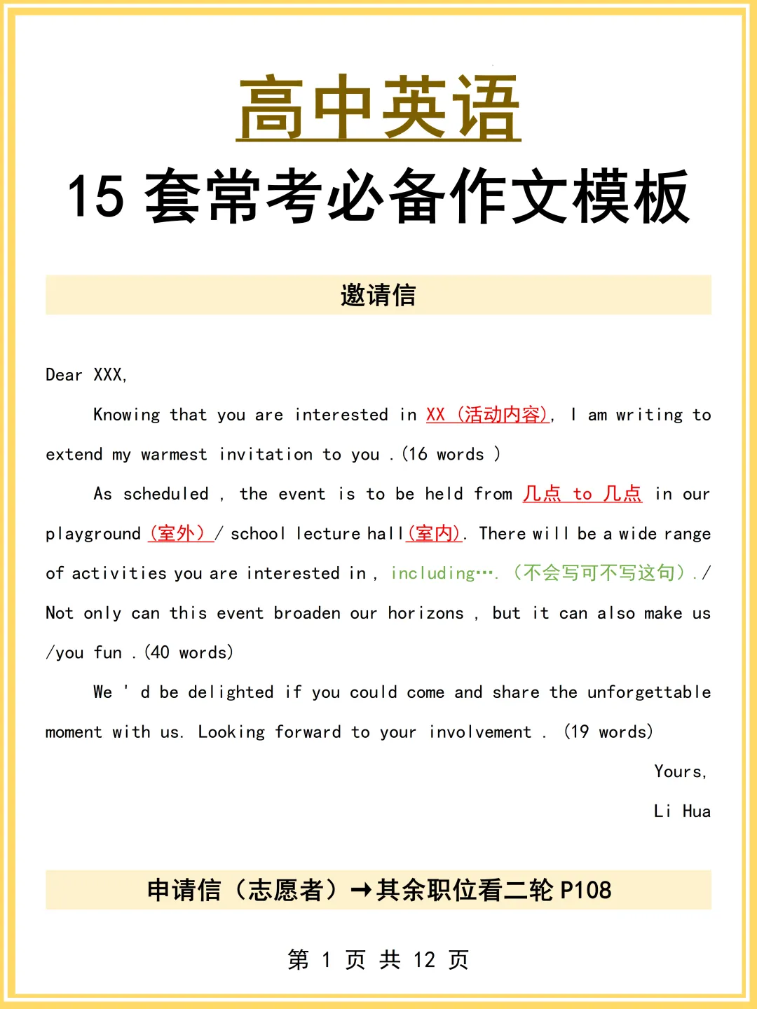 2026最新版:高中英语必备作文模板(可打印)还不快看!