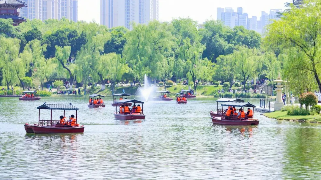 花展期间,游客们可在西南角遗址区体验春日露营,幕天席地,群花相伴;在南门、沉香亭、西南角花海区域逛春日市集,购买特色美食、精美文创;在码头乘船游湖,感受春日的松弛与惬意。