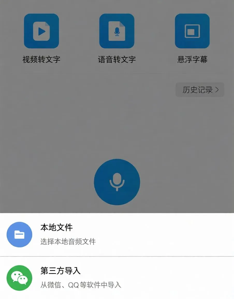 也能通过「第三方导入」直接从微信、QQ聊天记录中选取音频。实测一个500MB的高清视频,从选择到开始转写只需3秒。