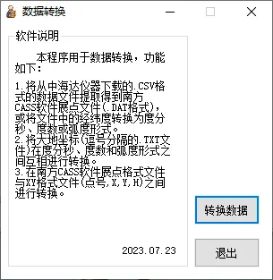 🔹 测绘数据转换✔ 支持 CASS展点格式 与(点号, X, Y, H)格式互转✔ 支持从 RTK设备导出的CSV文件 中提取: