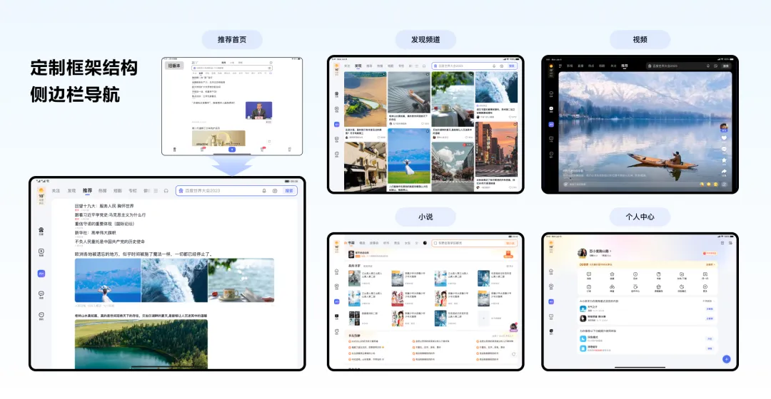 首先针对大屏设备手持习惯,不同于手机端,我们定制侧边栏导航框架,让操作更加便捷,同时提升大屏阅读体验与屏效利用;
