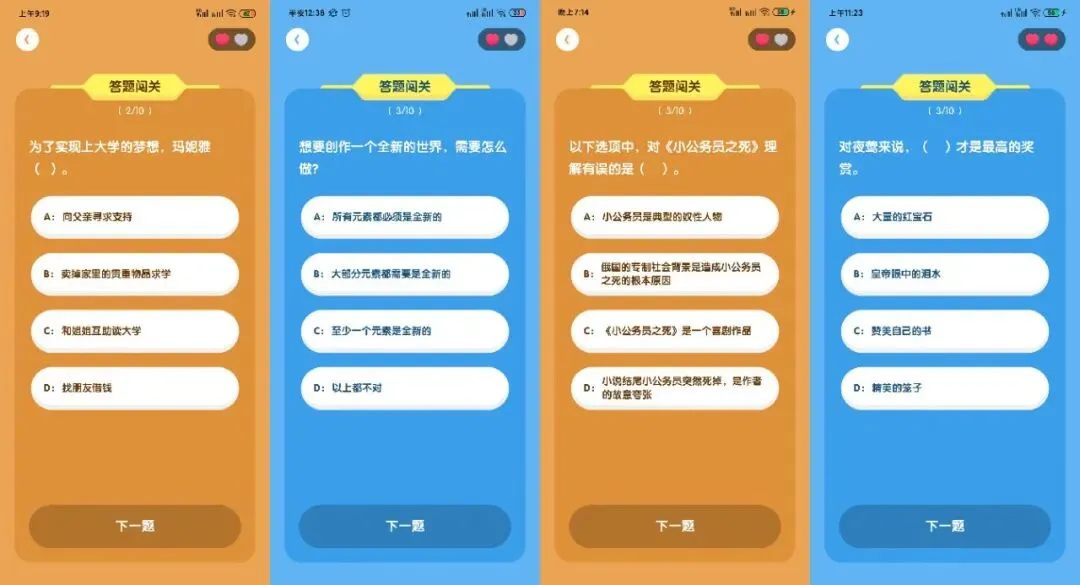 - 闯关答题卡: