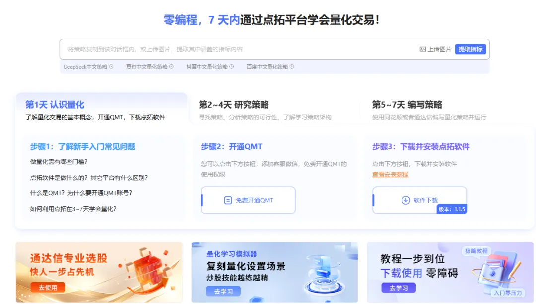 在量化交易日益普及的今天,不少投资者都想借助专业工具来提升交易效率。然而市面上的量化工具五花八门,有的需要较强的编程基础,有的功能又过于繁杂,让人不知如何选择。今天,我们就来为大家梳理几款热门的量化工具,并重点介绍一款专为普通散户打造的“利器”——点拓量化。