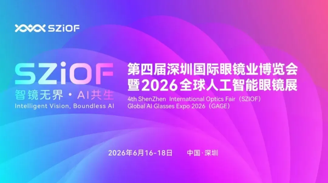 2026年6月16日-18日,2026全球人工智能眼镜展暨第四届深圳国际眼镜业博览会将在深圳会展中心(福田)7号馆(智能眼镜专馆)、9号馆盛大举行。