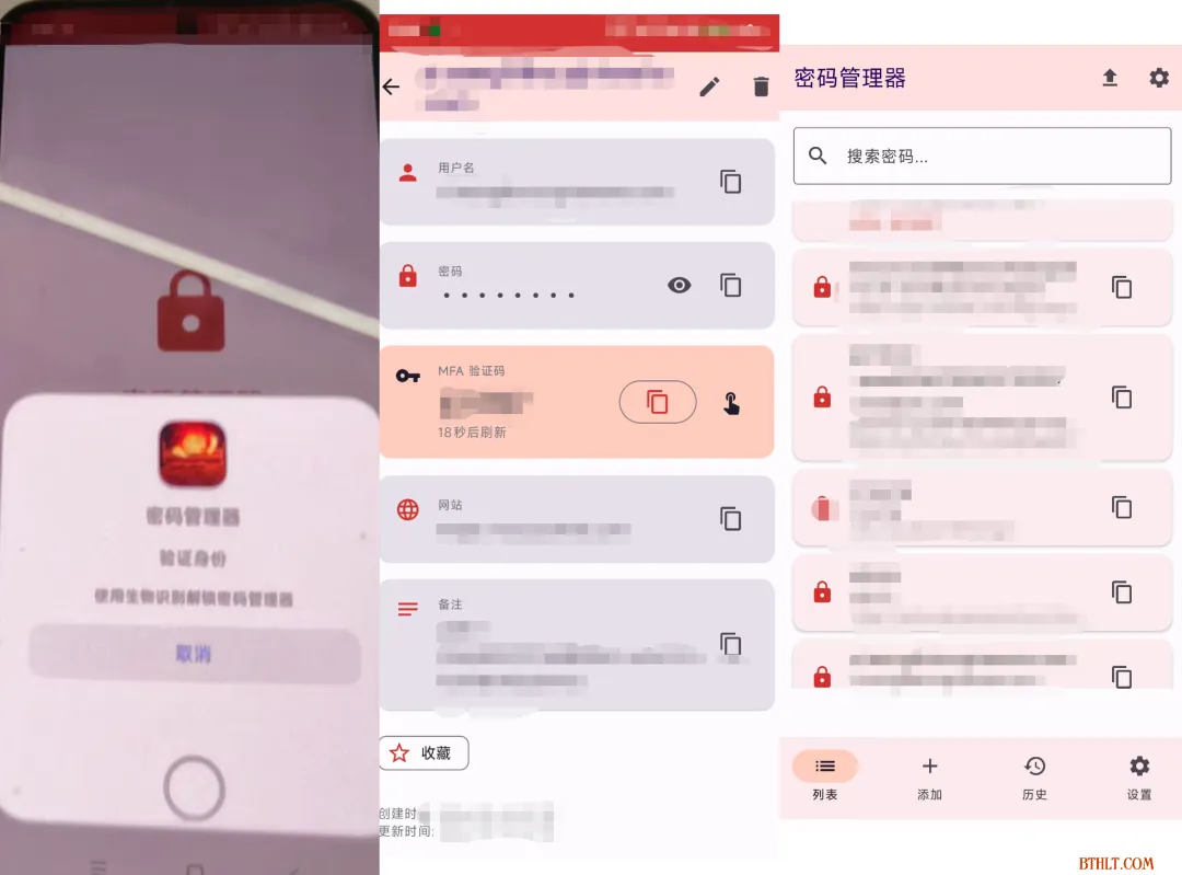 为了提升安全性和便捷性,应用集成了生物识别和自动锁定功能:
