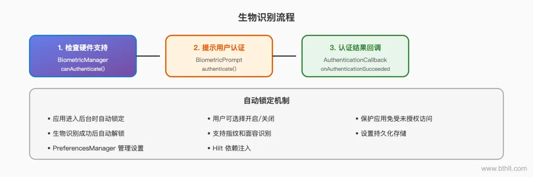 :利用 Android KeyStore 实现硬件级密钥保护,这是桌面端难以实现的 - 生物识别集成