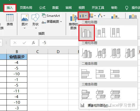 今天教个图表技巧:如果遇到全是负数的数据表,如何让柱形图的方向朝上?