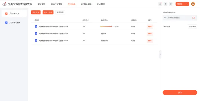 实现文档转换过程可视化管理。