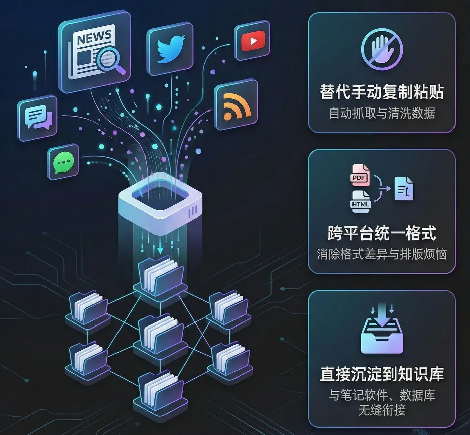 不再是“手动保存网页→截图→复制→整理”,而是一条命令搞定。