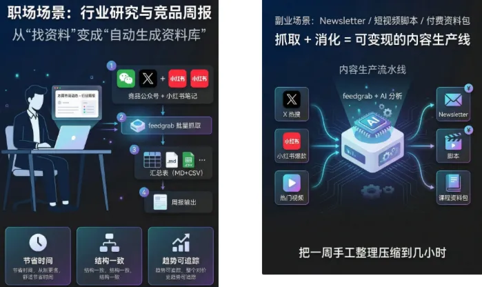 而feedgrab,恰恰给了我们普通职场人和副业玩家这个超级武器。