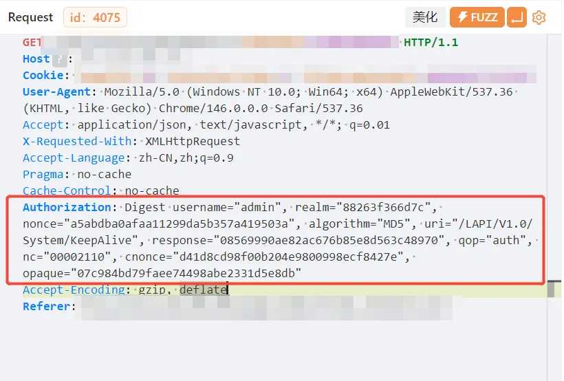 第一个:“查看数据包”。如下数据包中有一个Authorization,而后有各种参数,那我们就可以直接搜索参数,如 “nonce” 或者直接搜索 “Authorization”