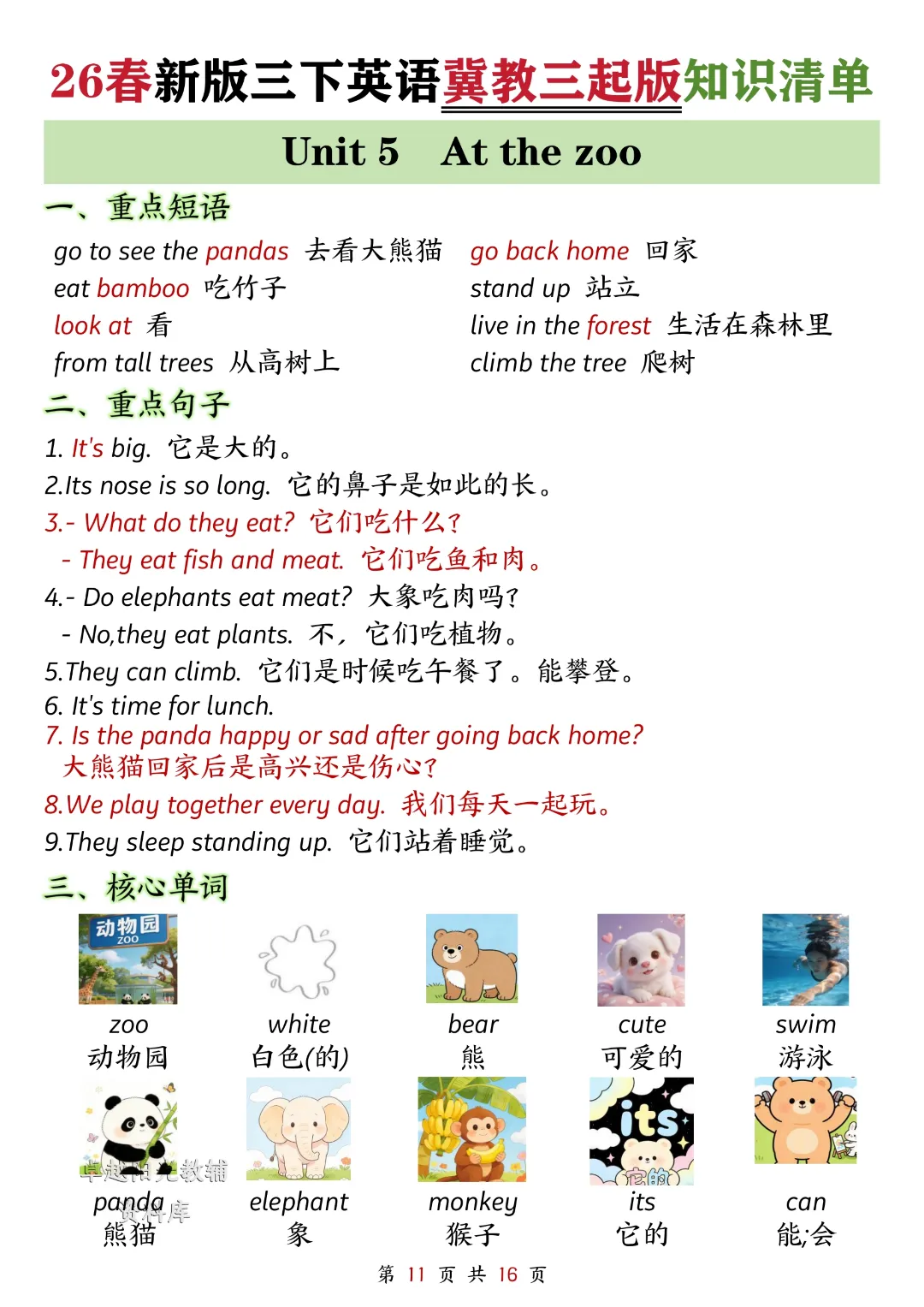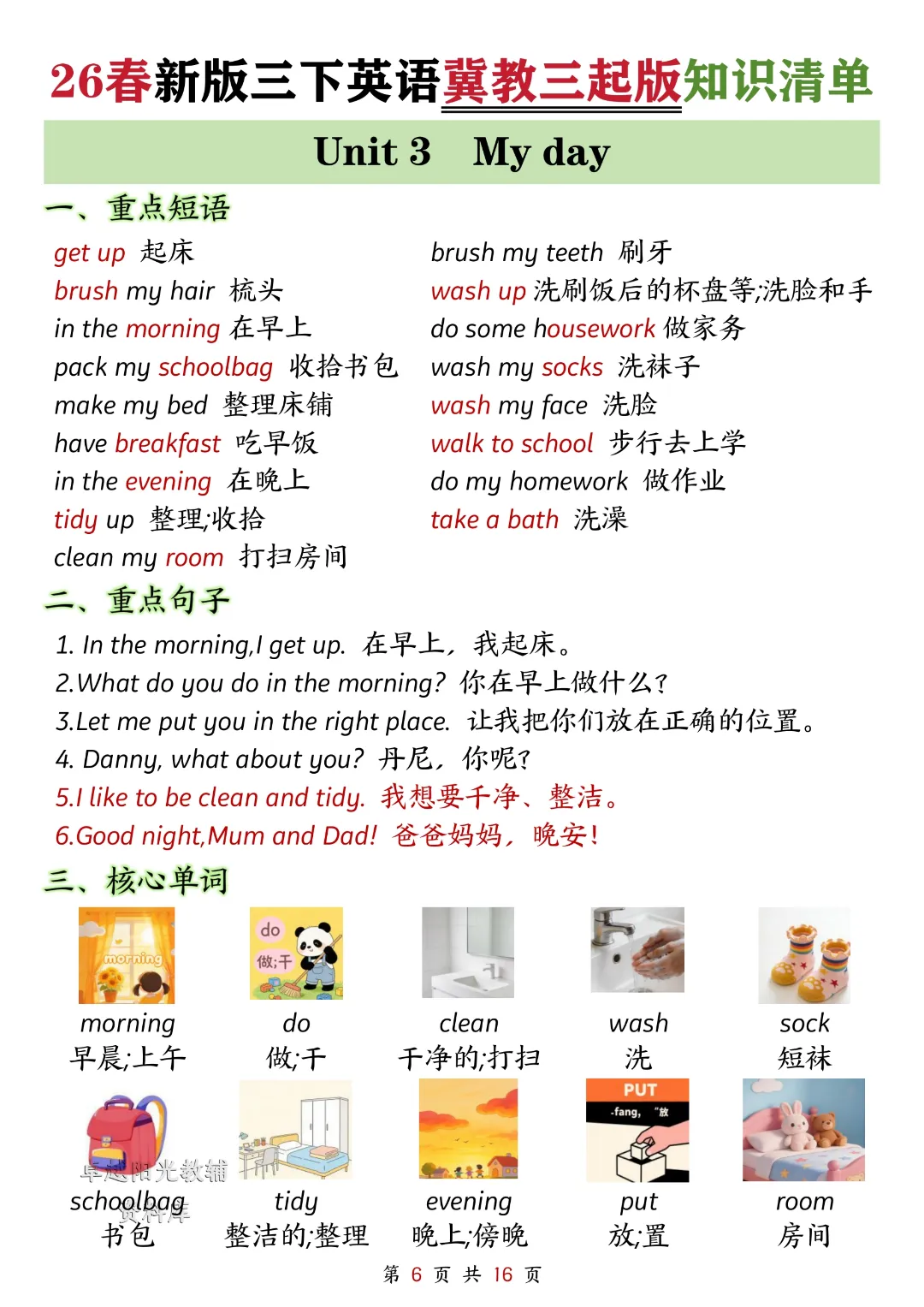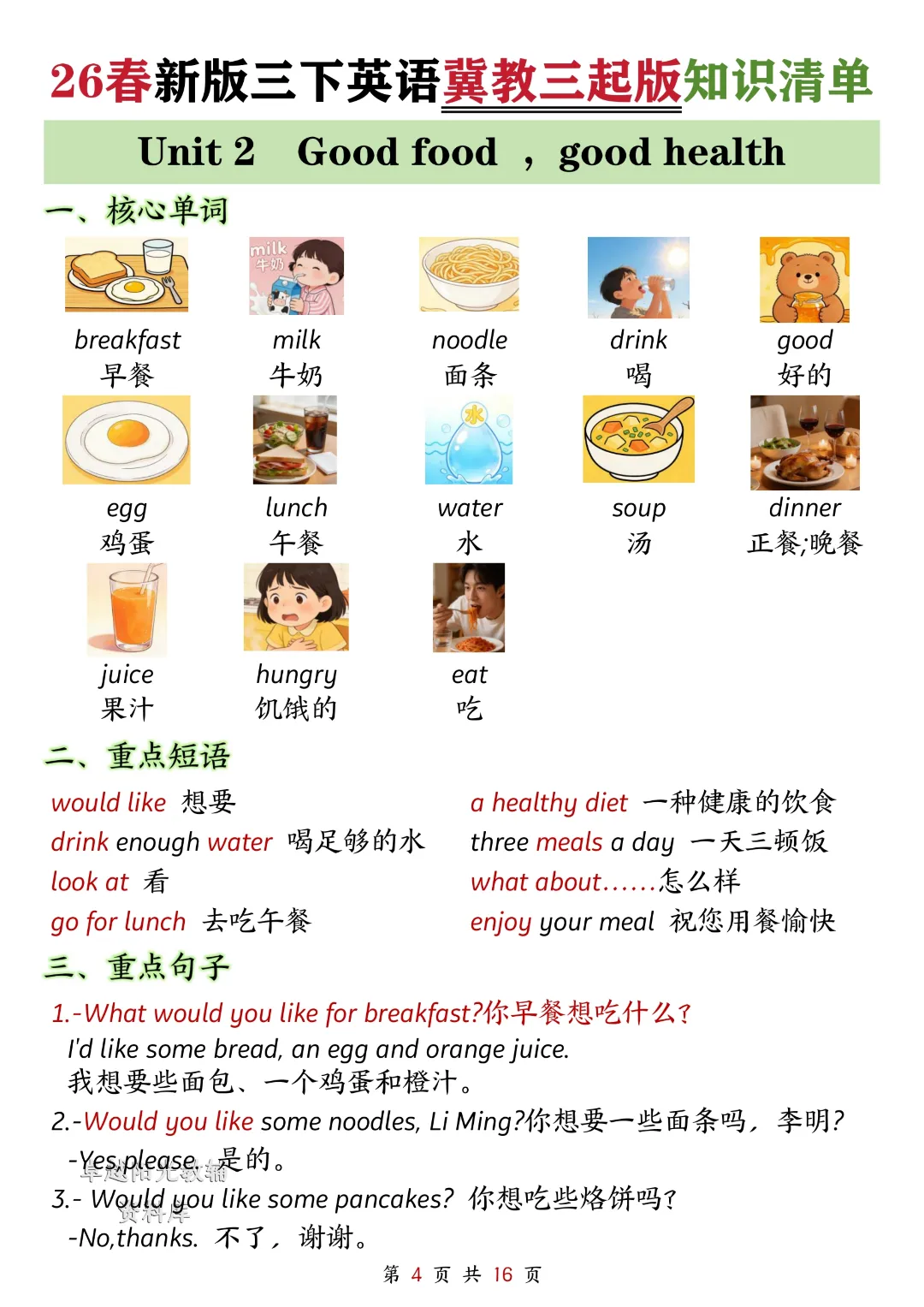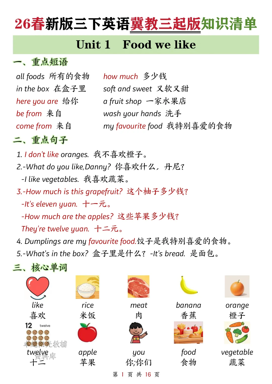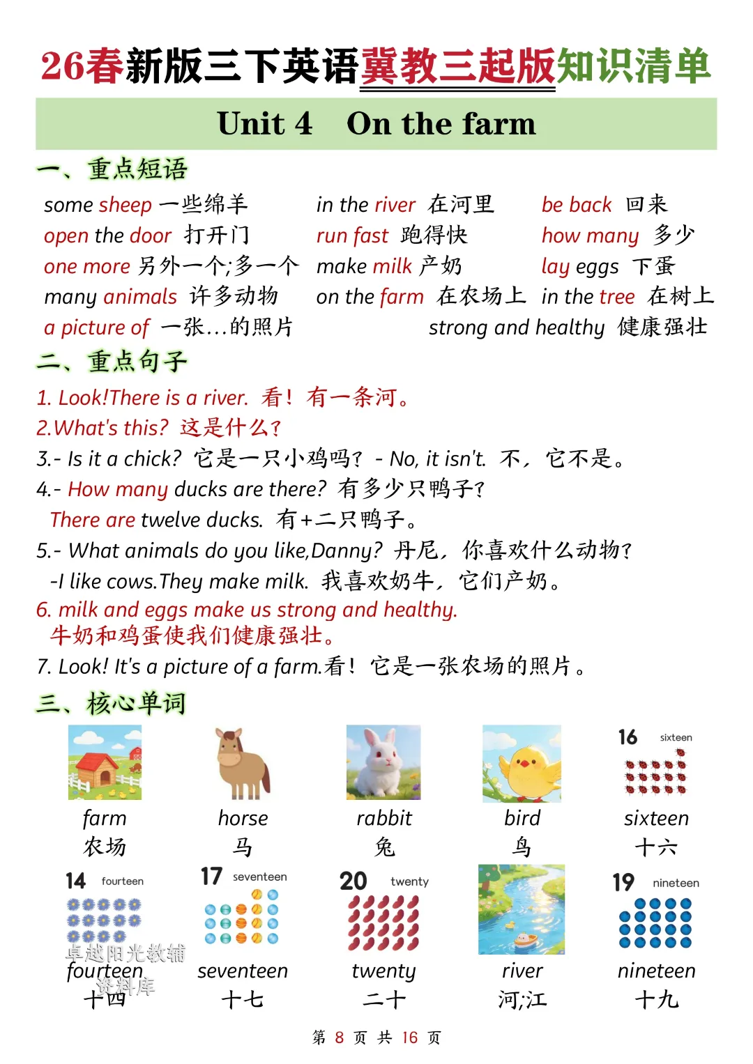 26春新三年级下册英语《冀教三起版必背知识点汇总》完整高清可打印