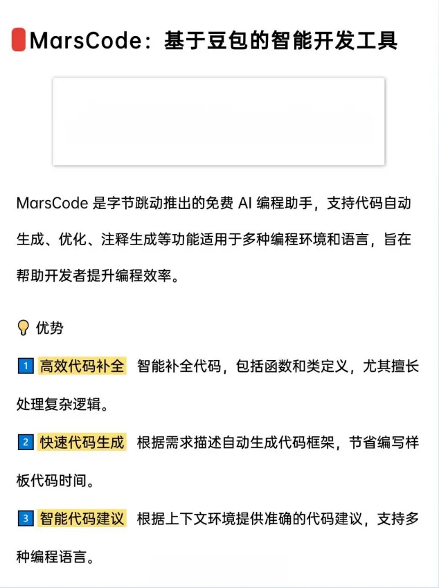 字节跳动推出的免费AI编程助手,支持多种编程环境和语言。 其优势在于高.效的代码补全(包括函数和类定义),能够快速生成代码框架并提供智能代码建议。