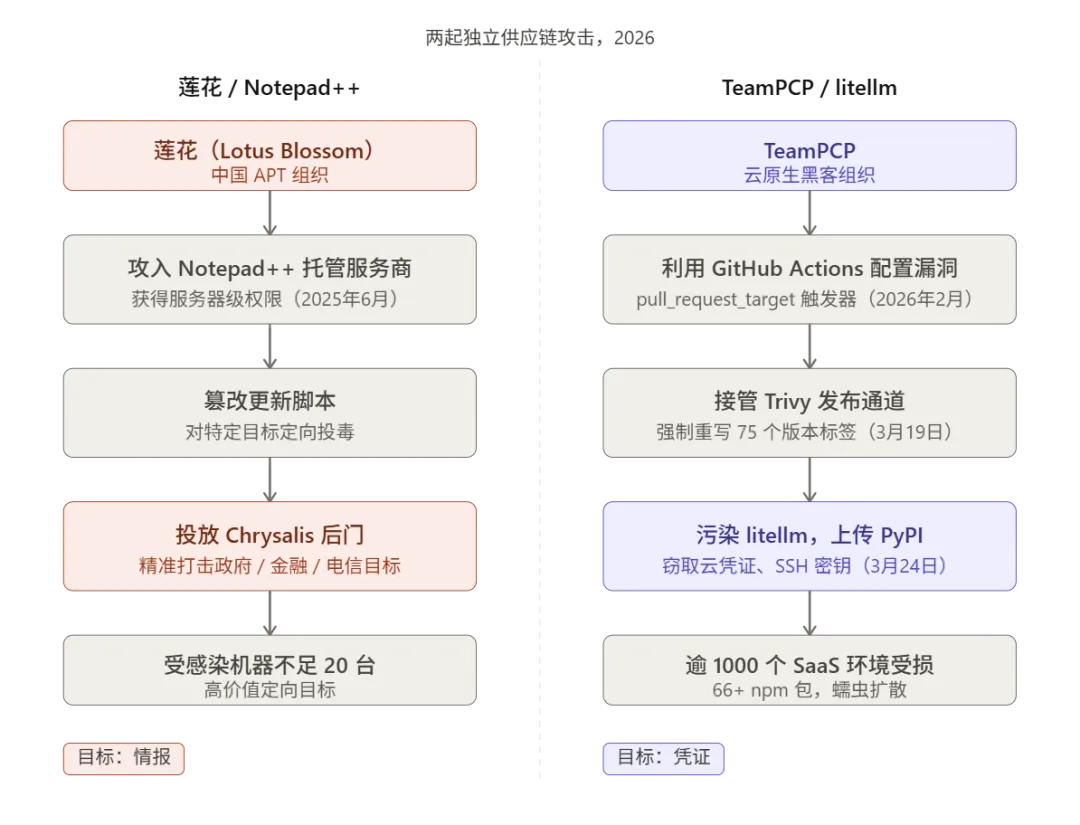 这两起事件用不同的方式,指向同一个脆弱性:现代软件开发中,信任是可以被传递和滥用的。