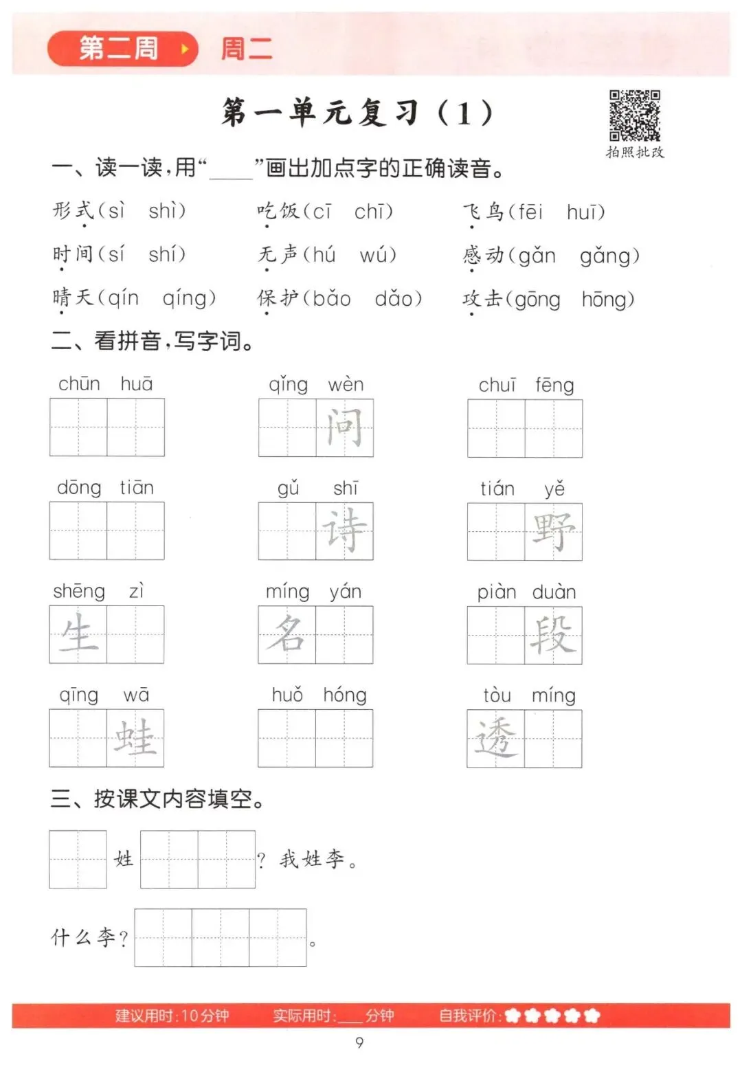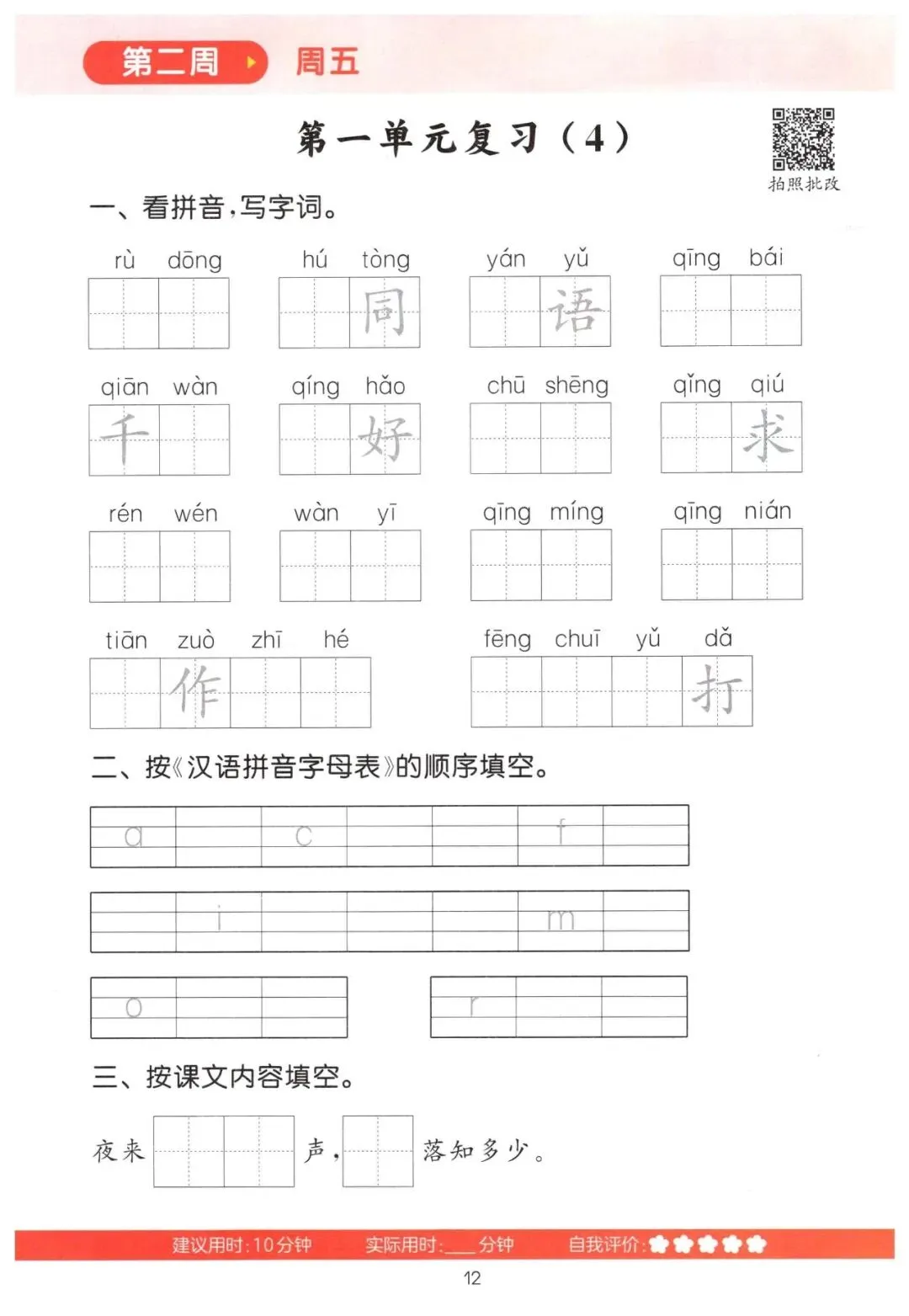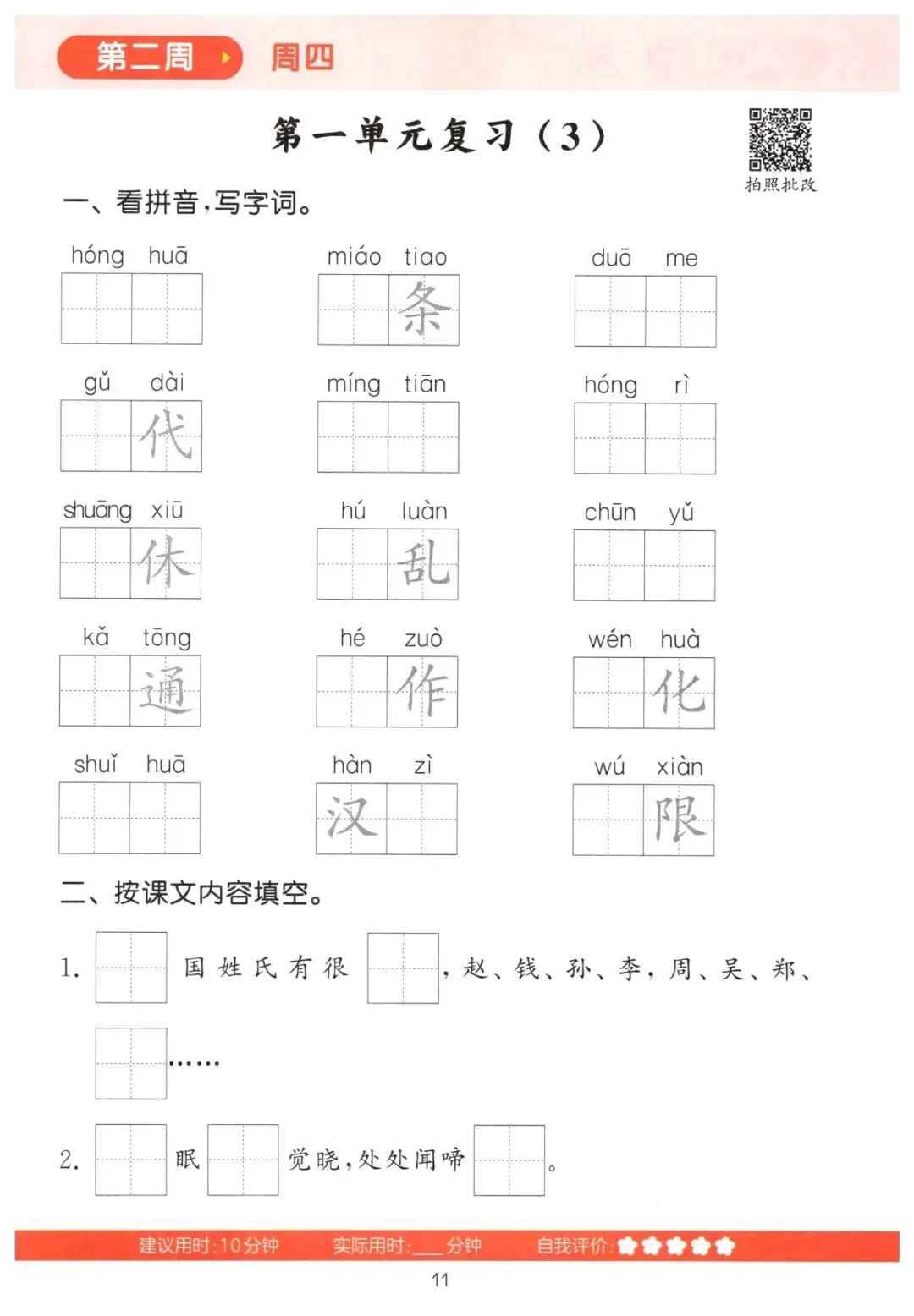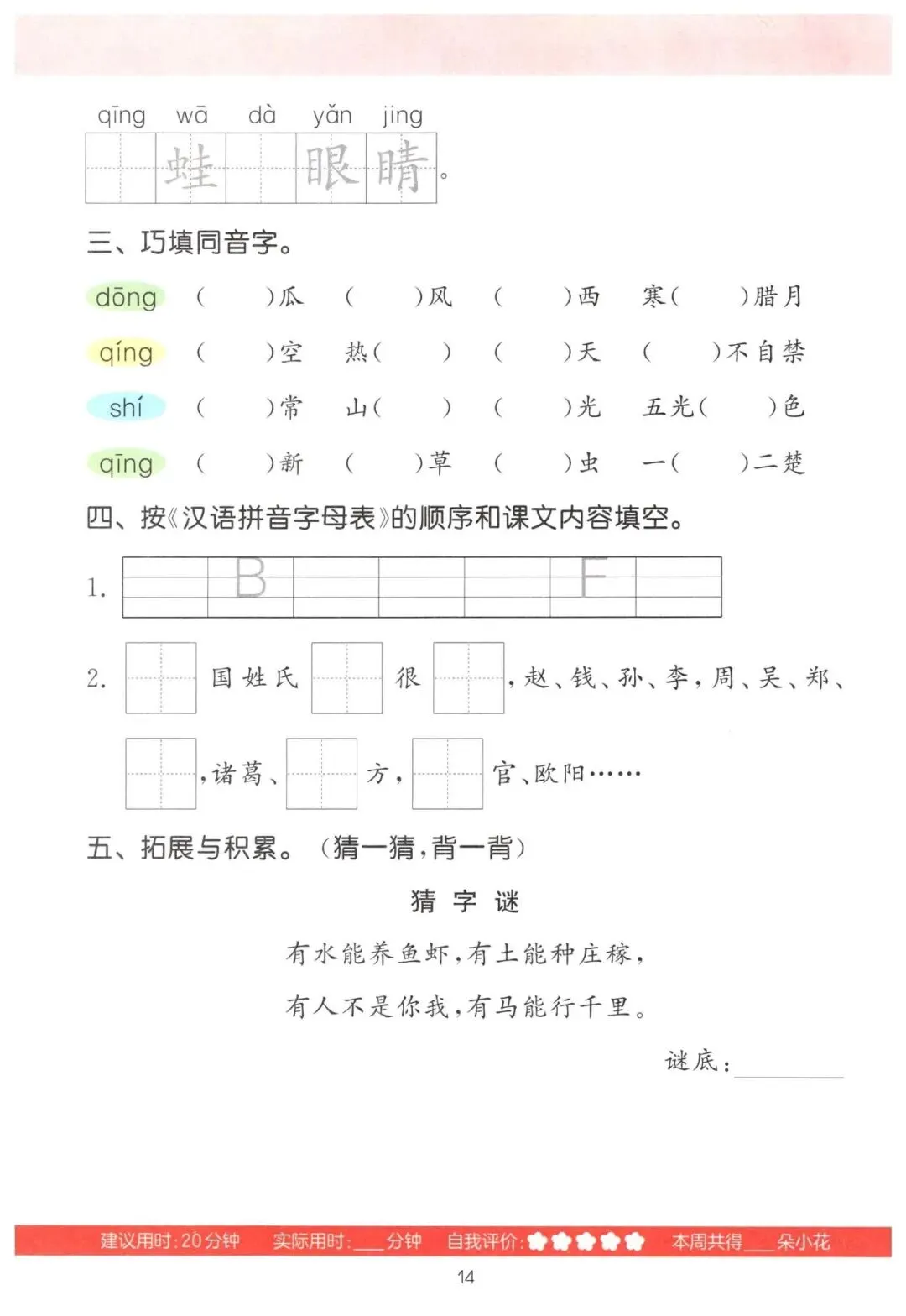 一年级语文下册《默写能手》(领高清PDF打印版)