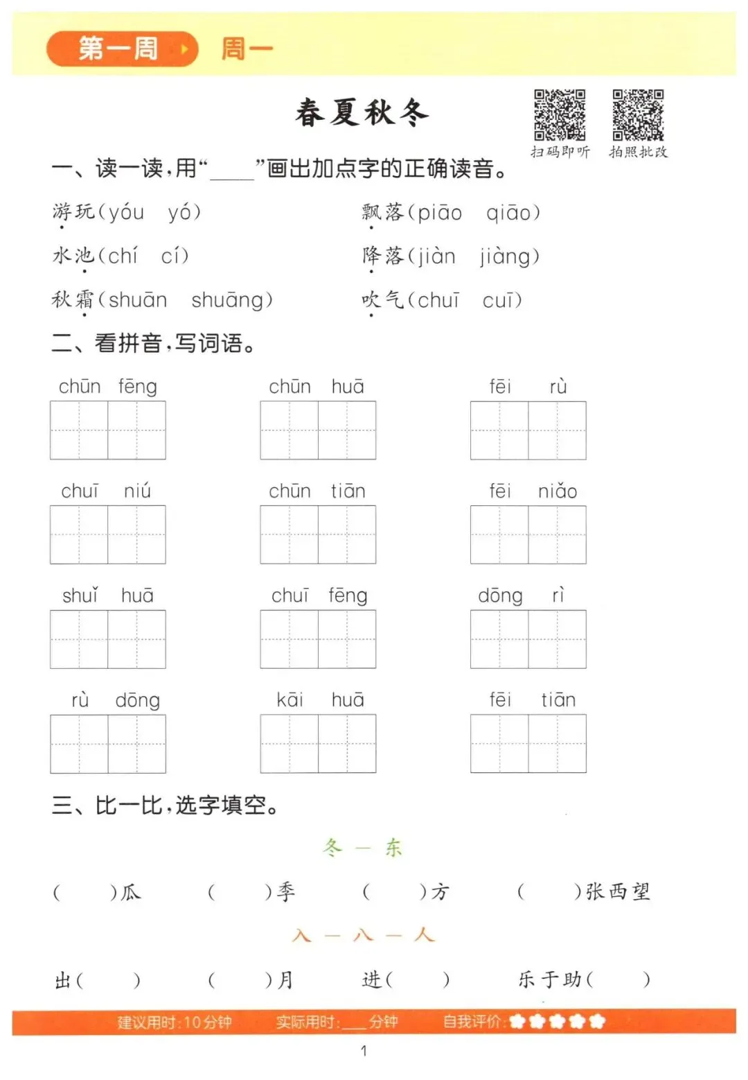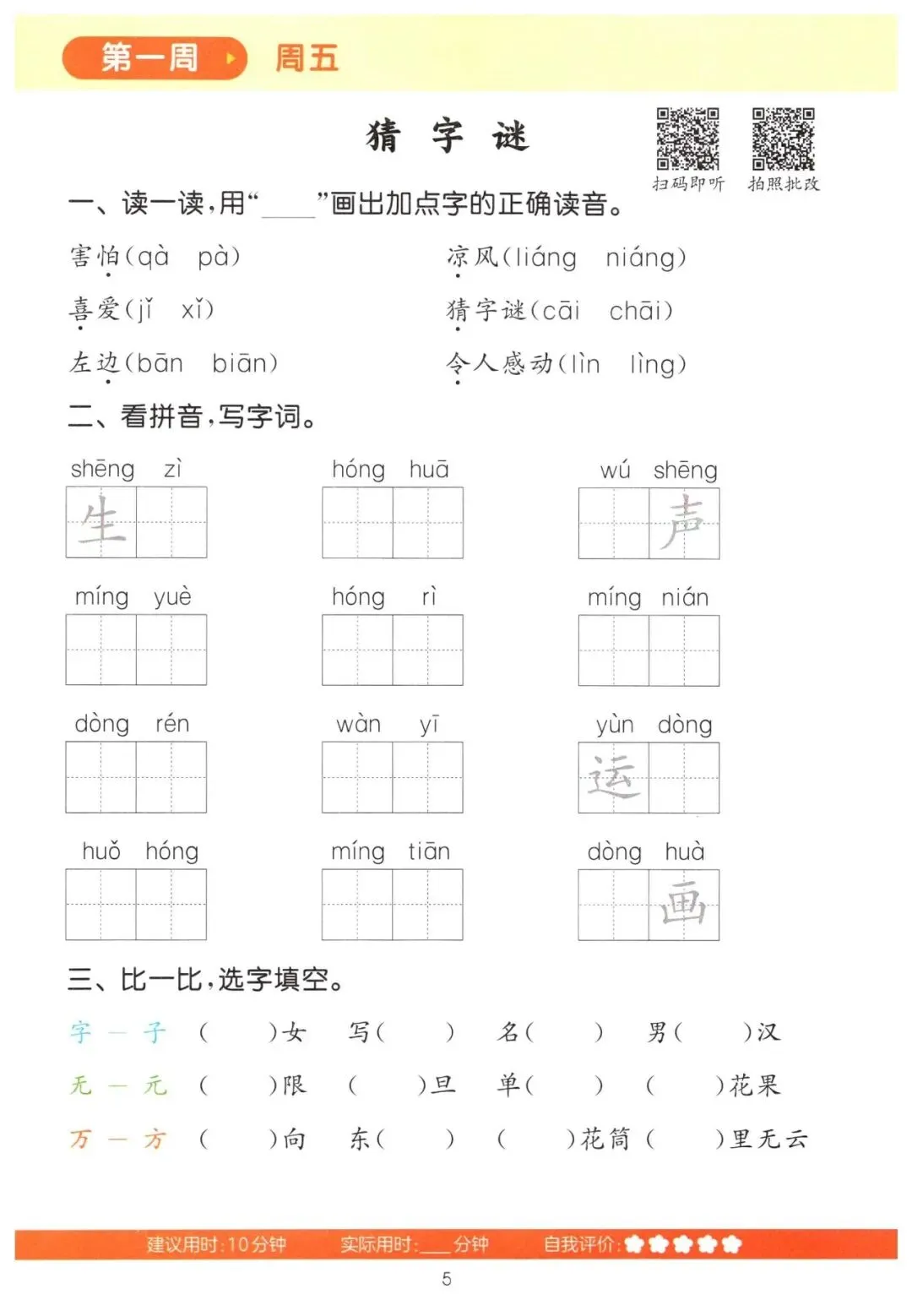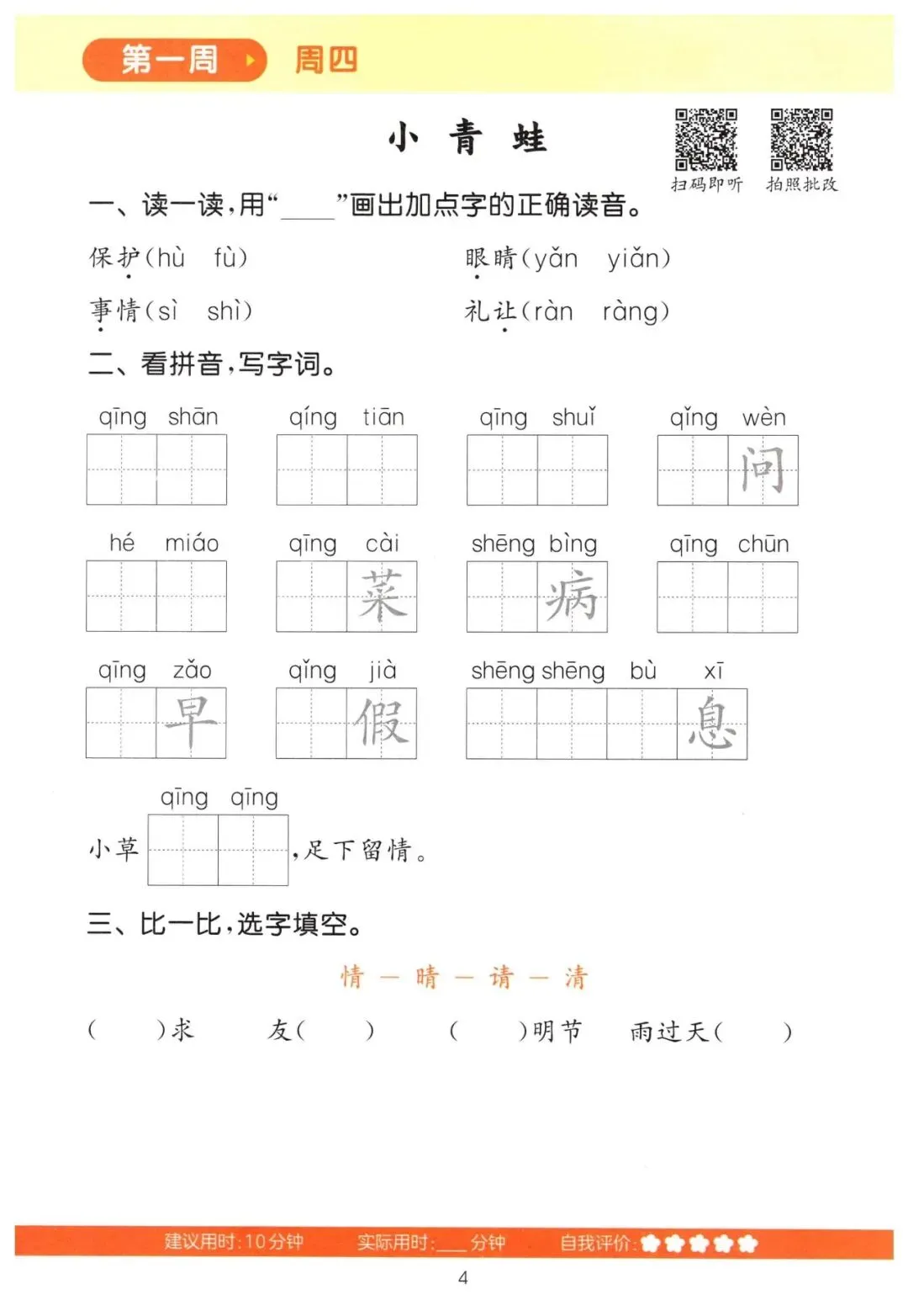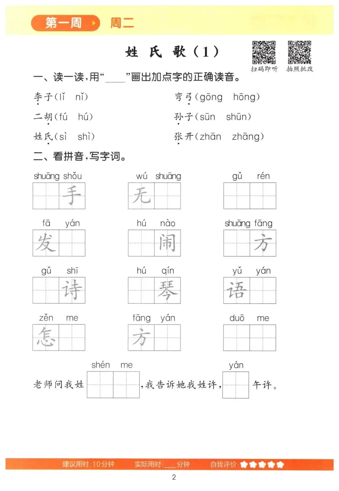 一年级语文下册《默写能手》(领高清PDF打印版)