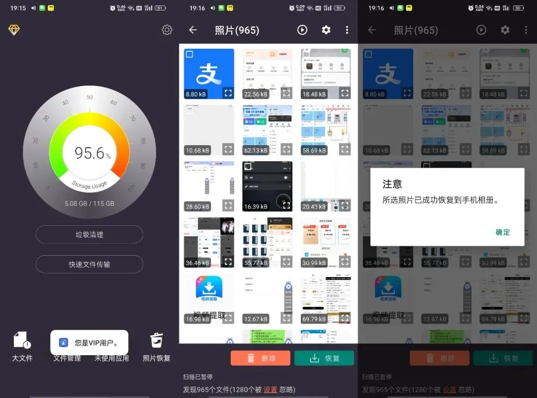 **简介:** 文件清理大师是一款集系统清理与数据恢复功能的工具。它可以智能扫描并清理设备中的垃圾文件、缓存、残留安装包以释放存储空间,同时具备被删除照片和文件的恢复能力,帮助用户优化设备性能并挽回误删的重要数据。
