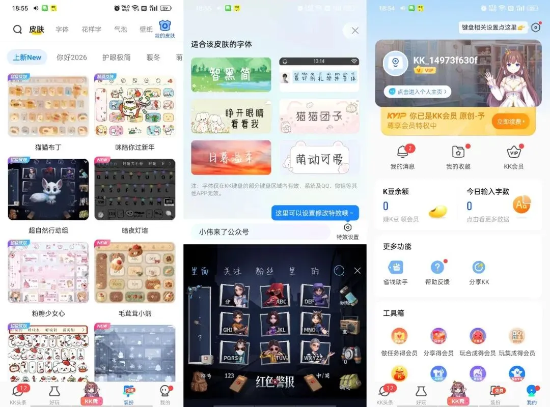 **简介: KK键盘是一款主打趣味社交和个性表达的输入法应用。除了基础的输入功能,它提供了丰富的表情包、颜文字、主题皮肤,并内置了多种互动玩法,如斗图、语聊等,旨在让文字聊天更加生动有趣。