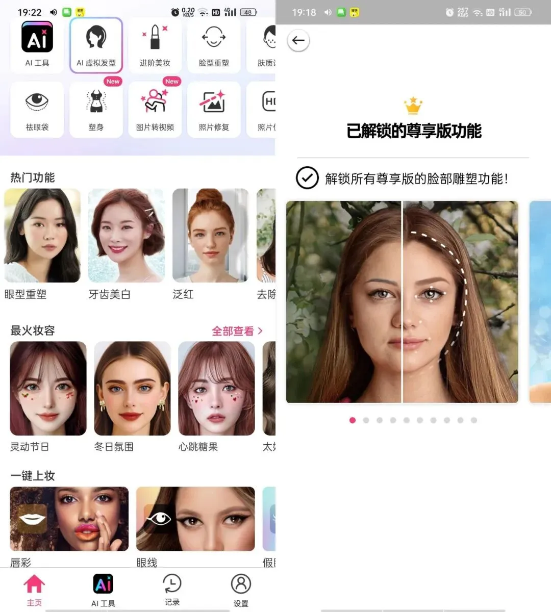 **简介:** YouCam Makeup(玩美彩妆)是一款领先的虚拟化妆与自拍美化应用。它利用增强现实(AR)技术,让用户实时尝试各种口红、眼影、粉底等彩妆效果,并提供美颜、发型模拟、滤镜和照片编辑功能,帮助用户在购买前预览妆容或创作精美的自拍照片。