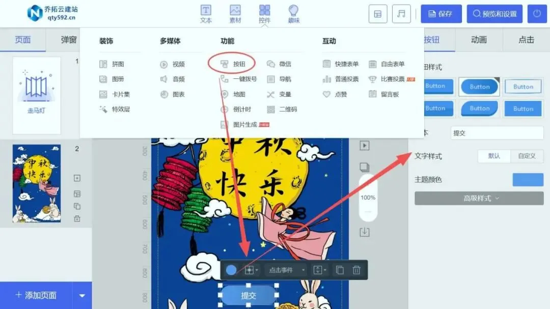 •裂变功能:内置17种趣味互动功能(画中画、720°全景、摇一摇等),搭配变量生成个性化海报功能,访客可长按保存、一键分享,助力社交裂变;支持表单收集、点赞投票等互动组件,提升用户参与度,实测单款社交H5平均传播率较同类工具提升40%。