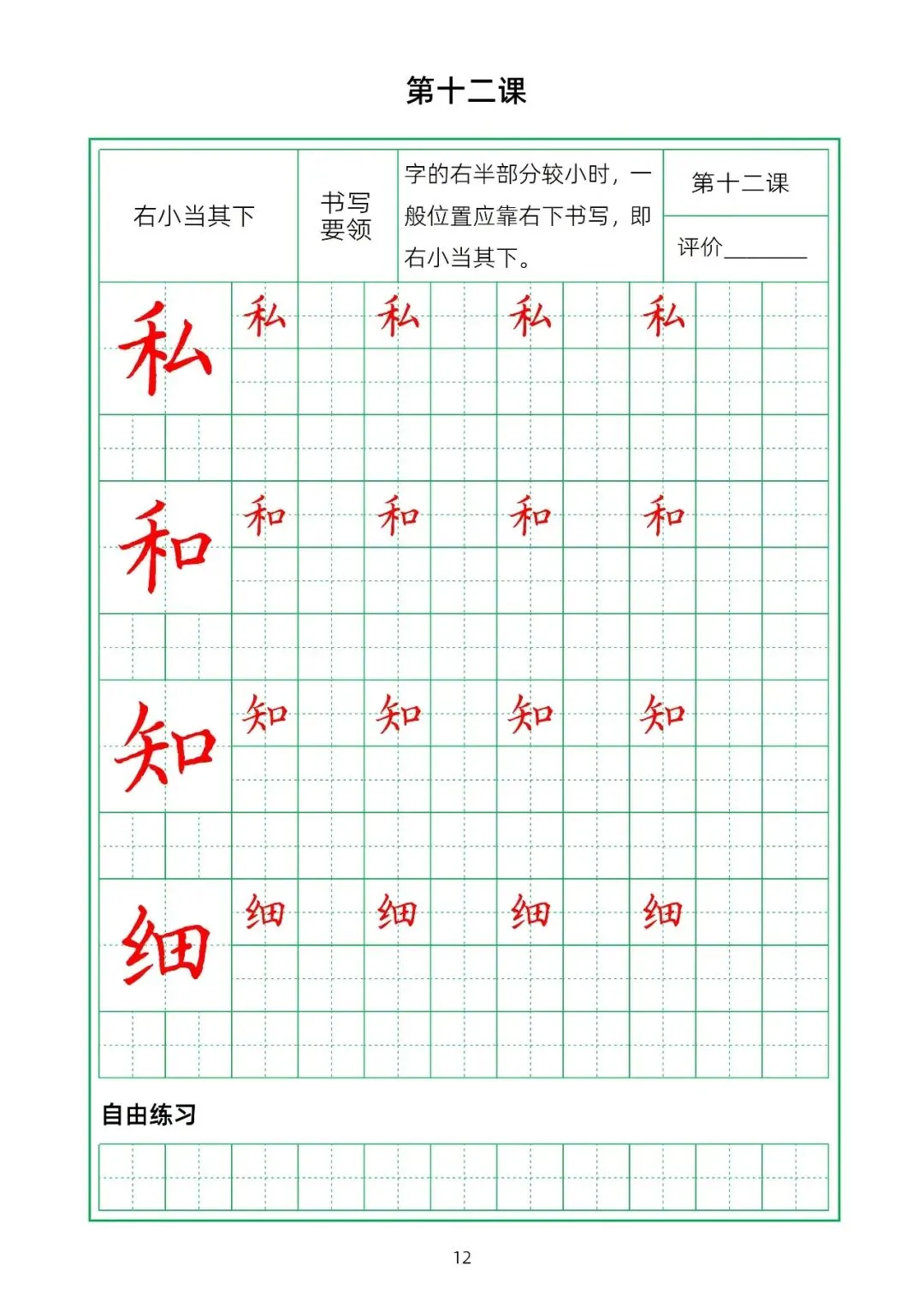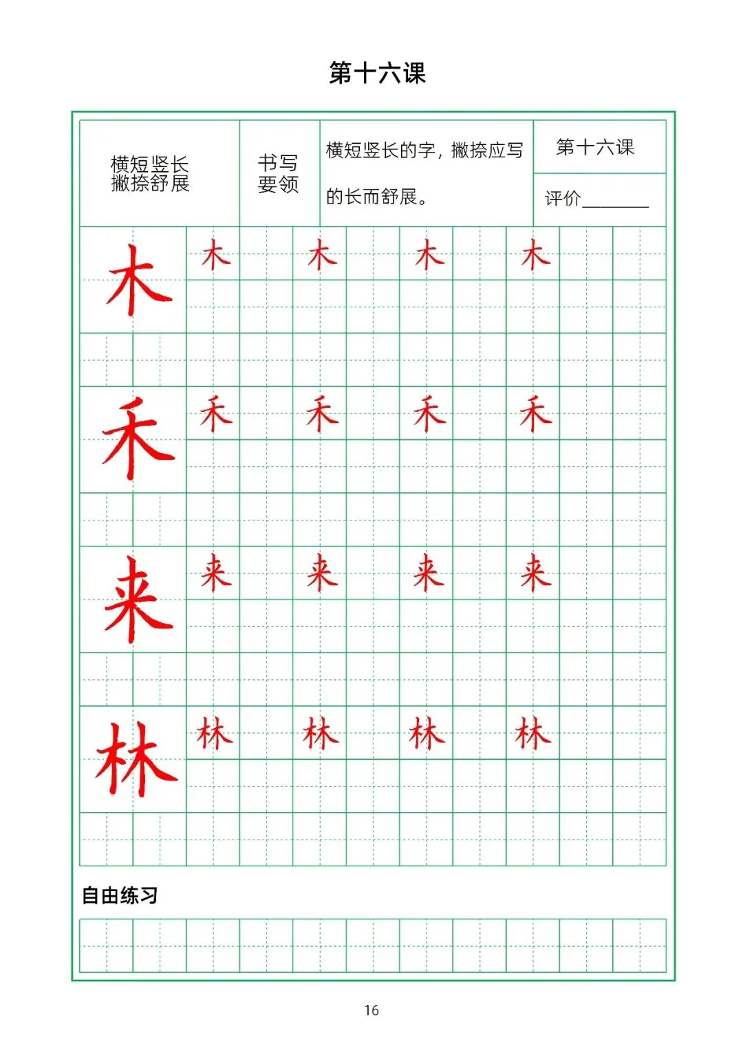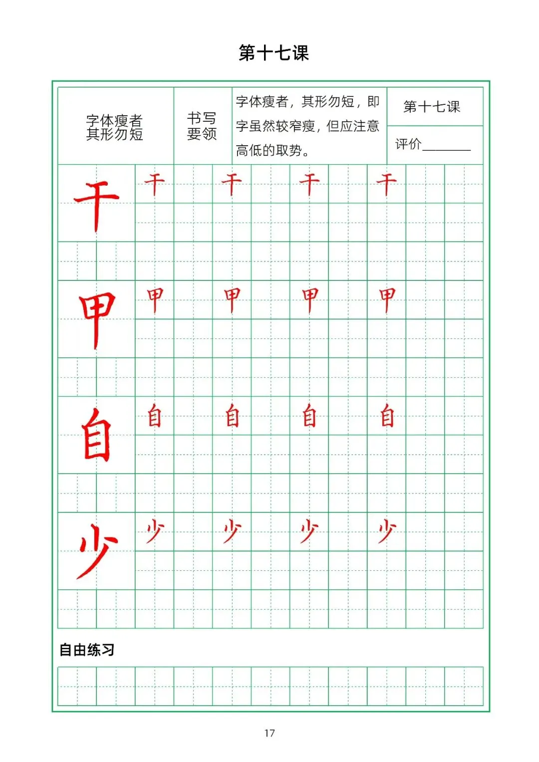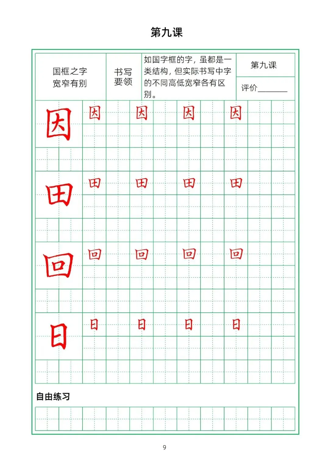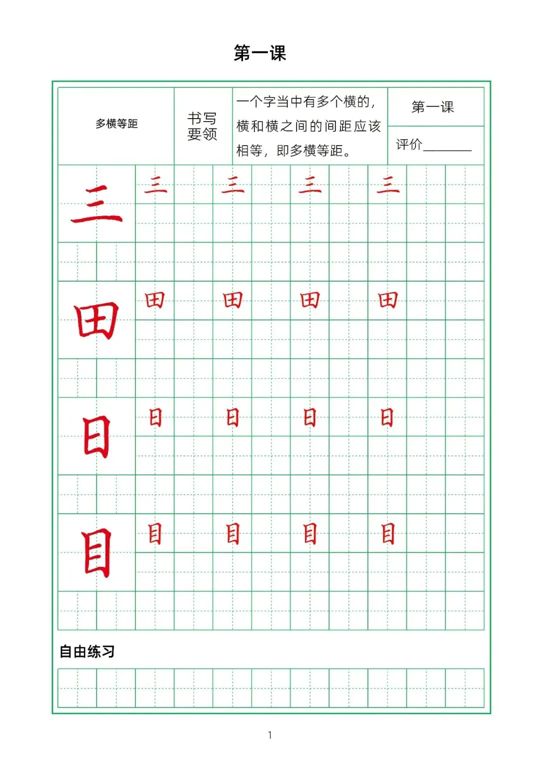 田字格硬笔楷书教材,间架结构,PDF免费下载(含基本笔画、偏旁部首链接)