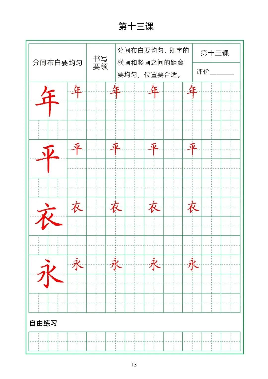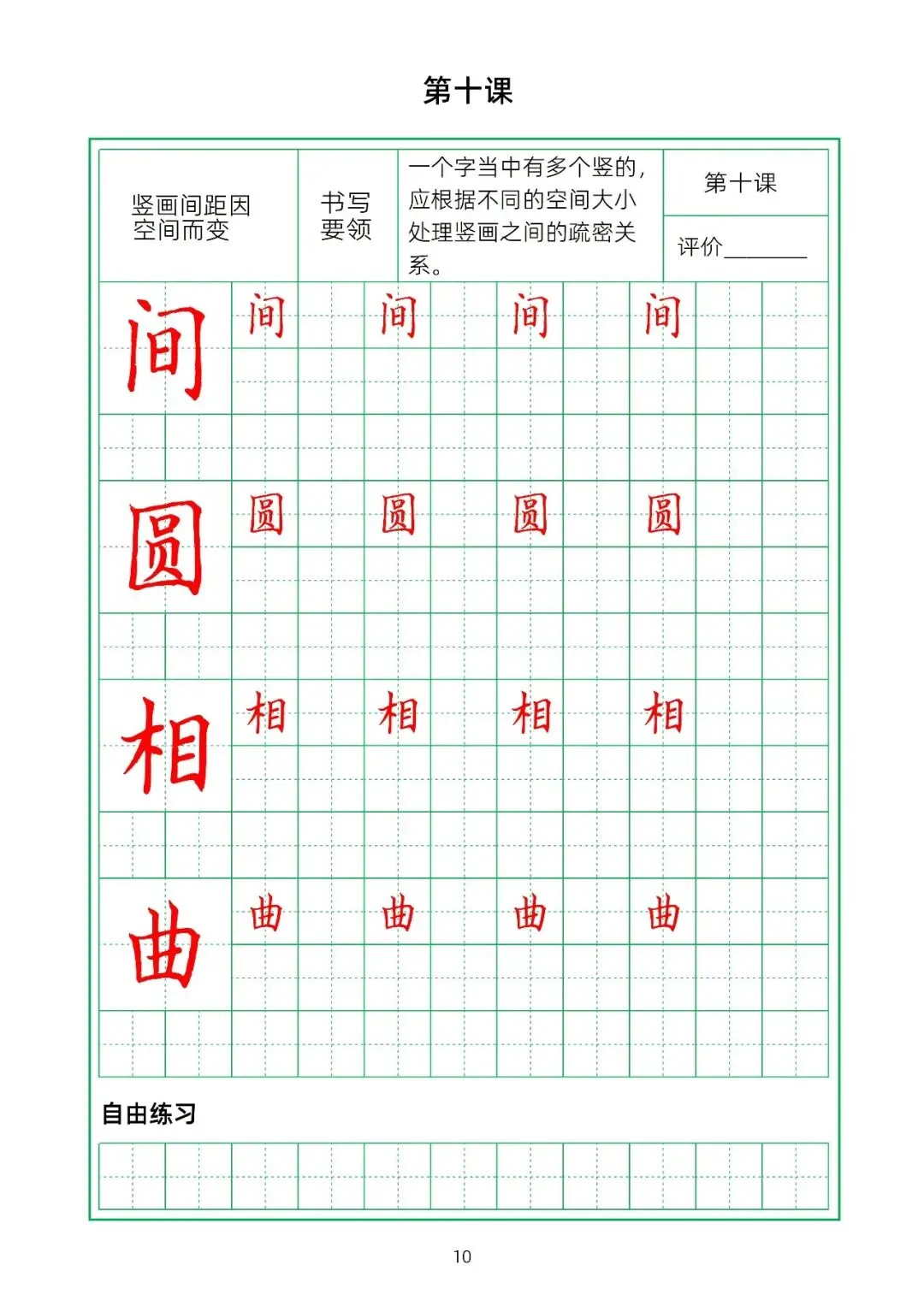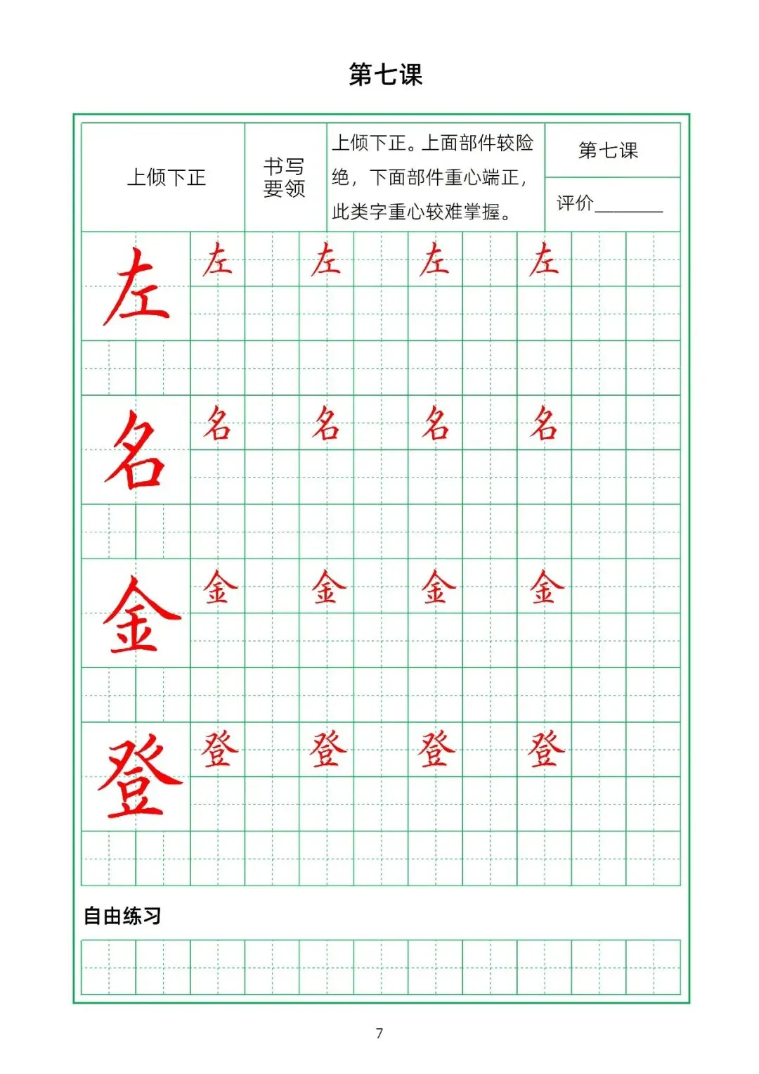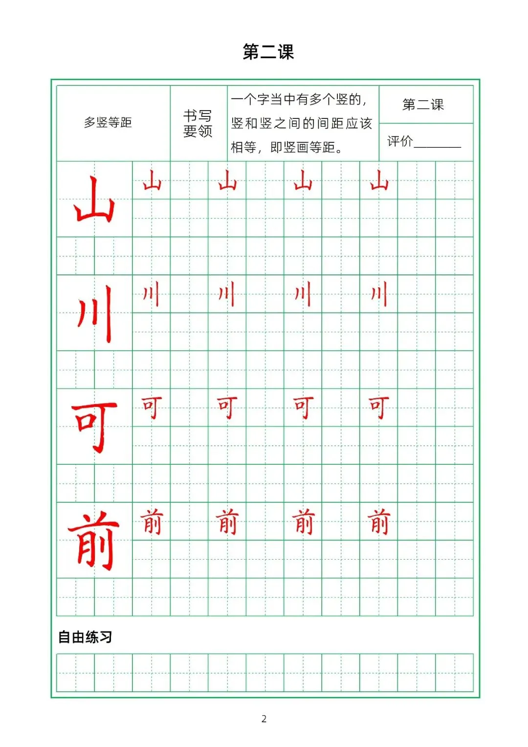 田字格硬笔楷书教材,间架结构,PDF免费下载(含基本笔画、偏旁部首链接)