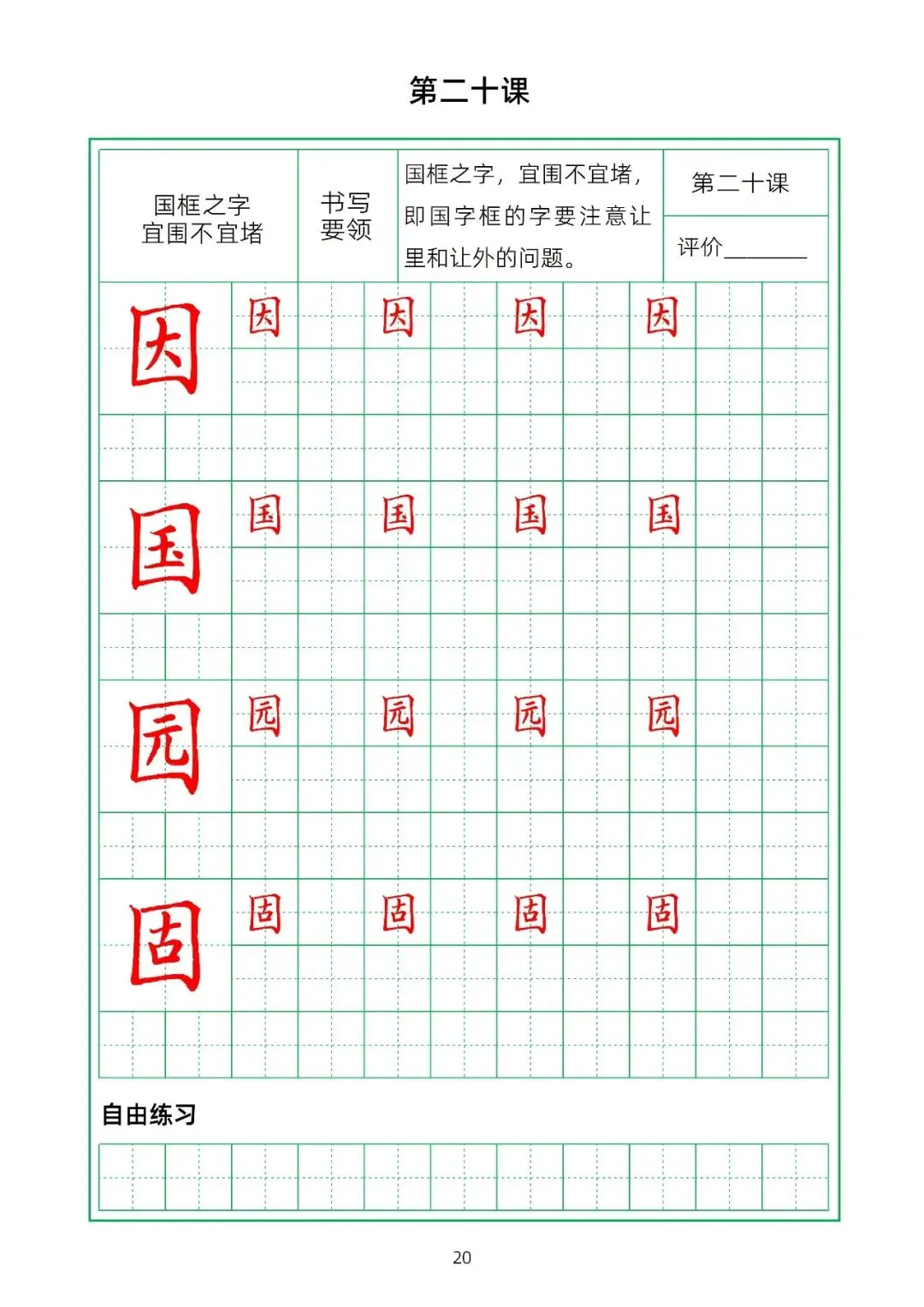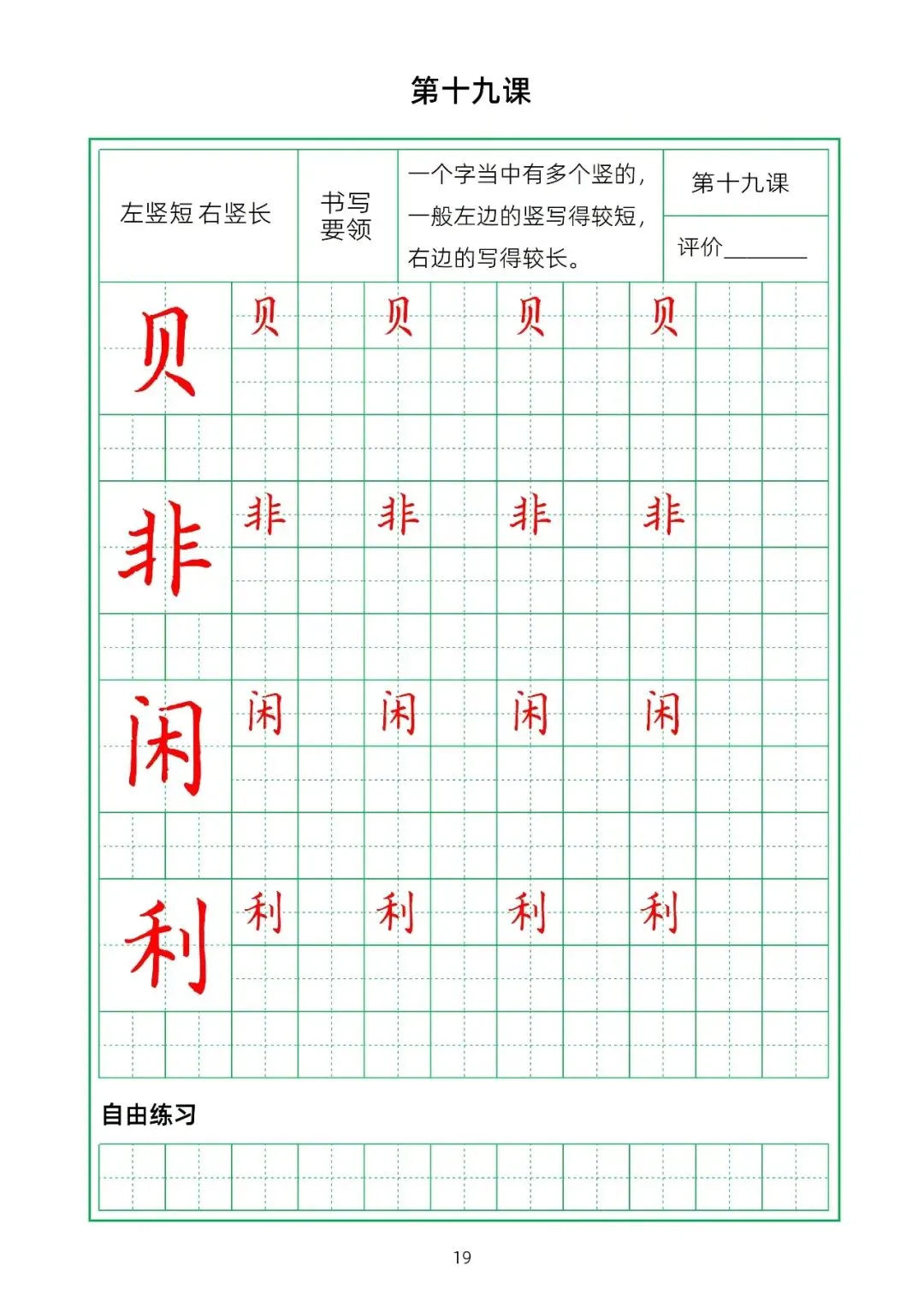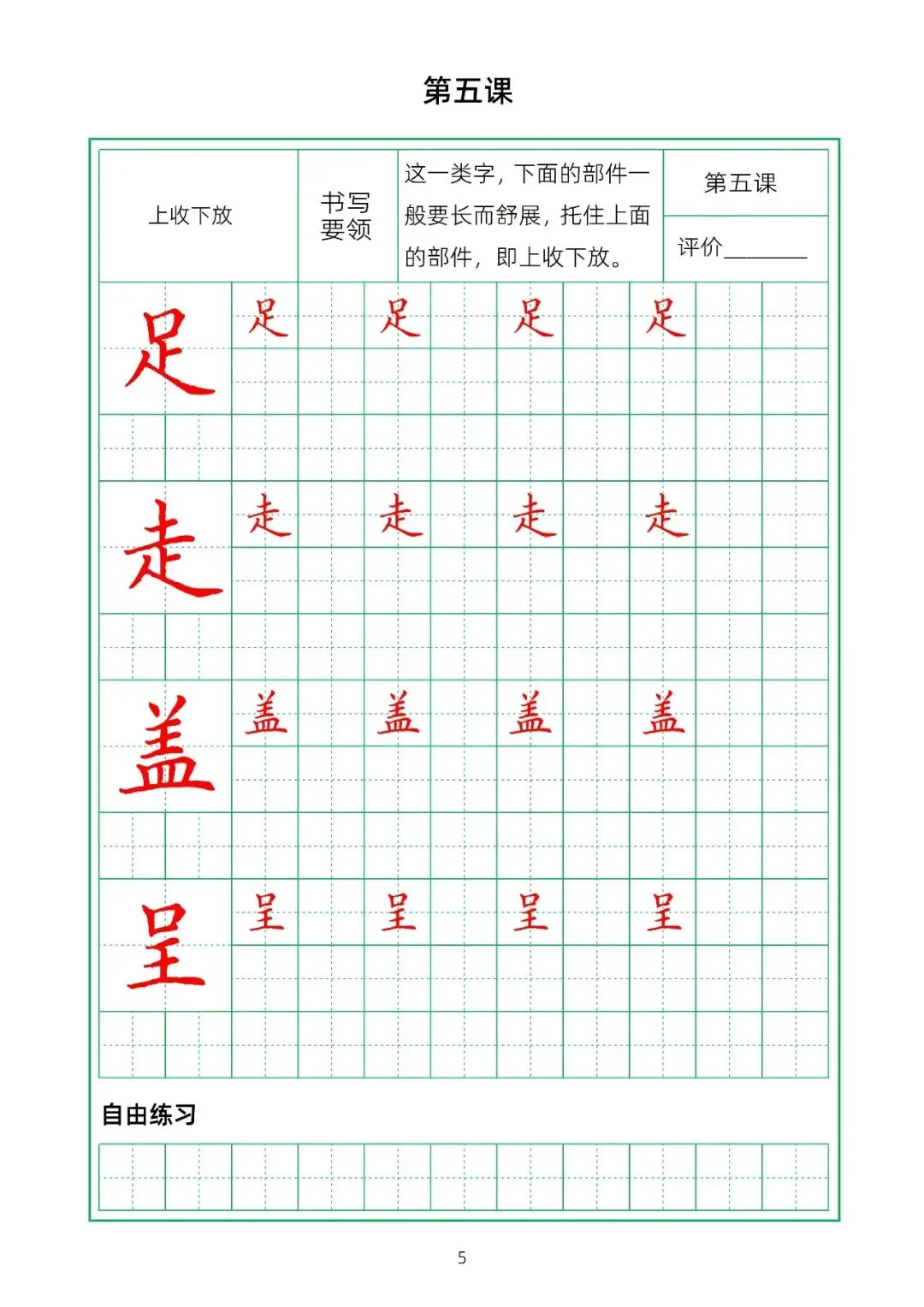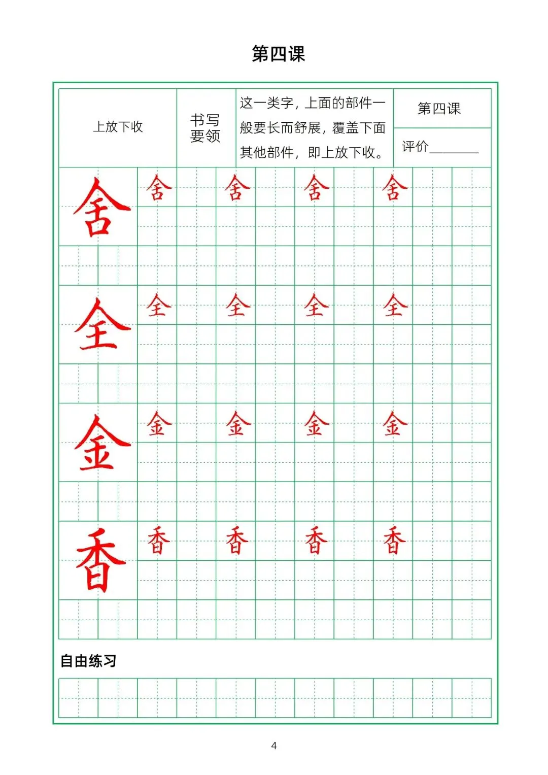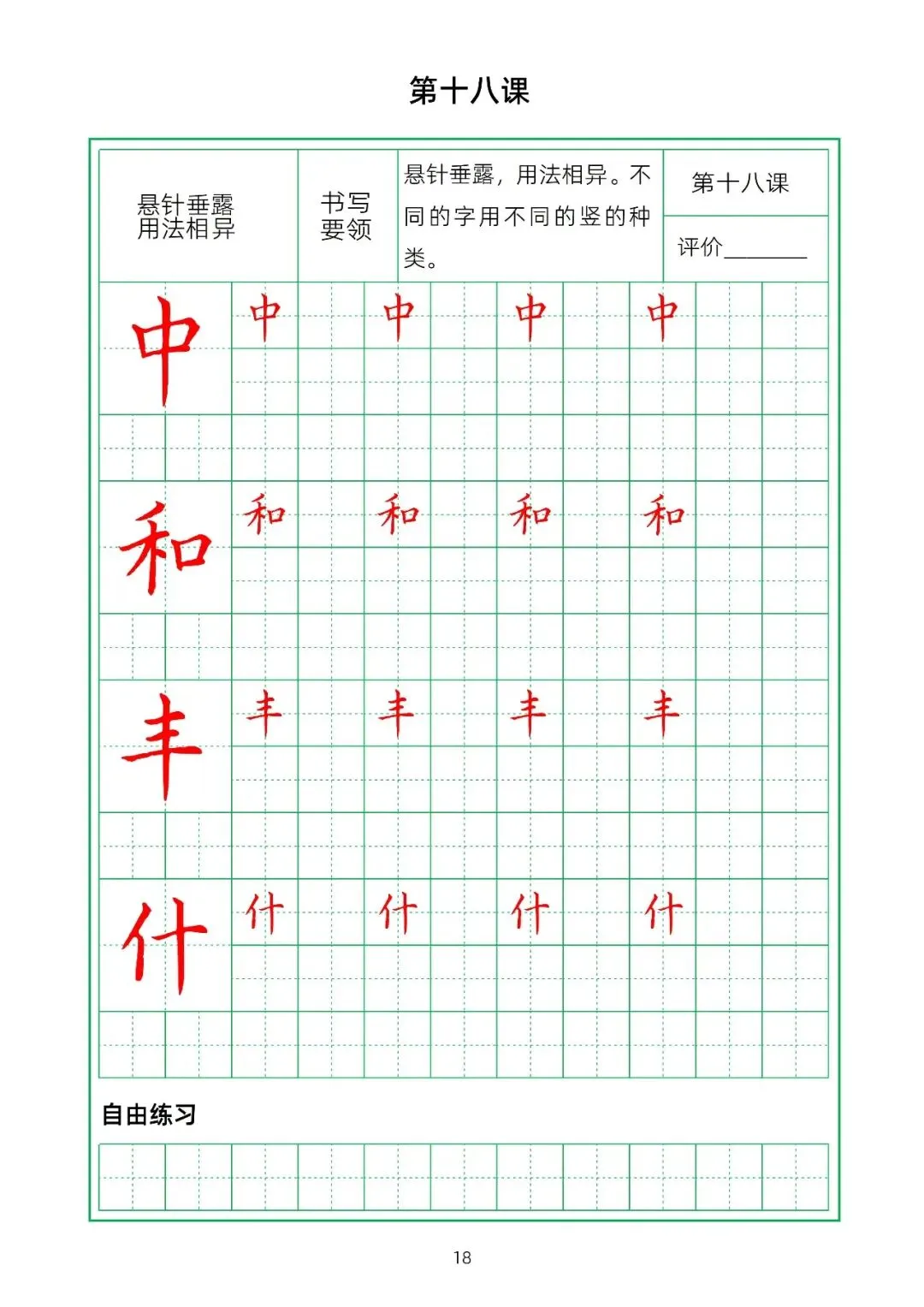 田字格硬笔楷书教材,间架结构,PDF免费下载(含基本笔画、偏旁部首链接)