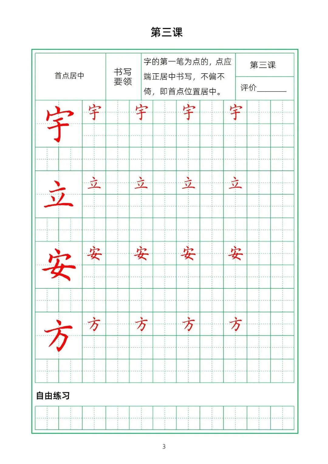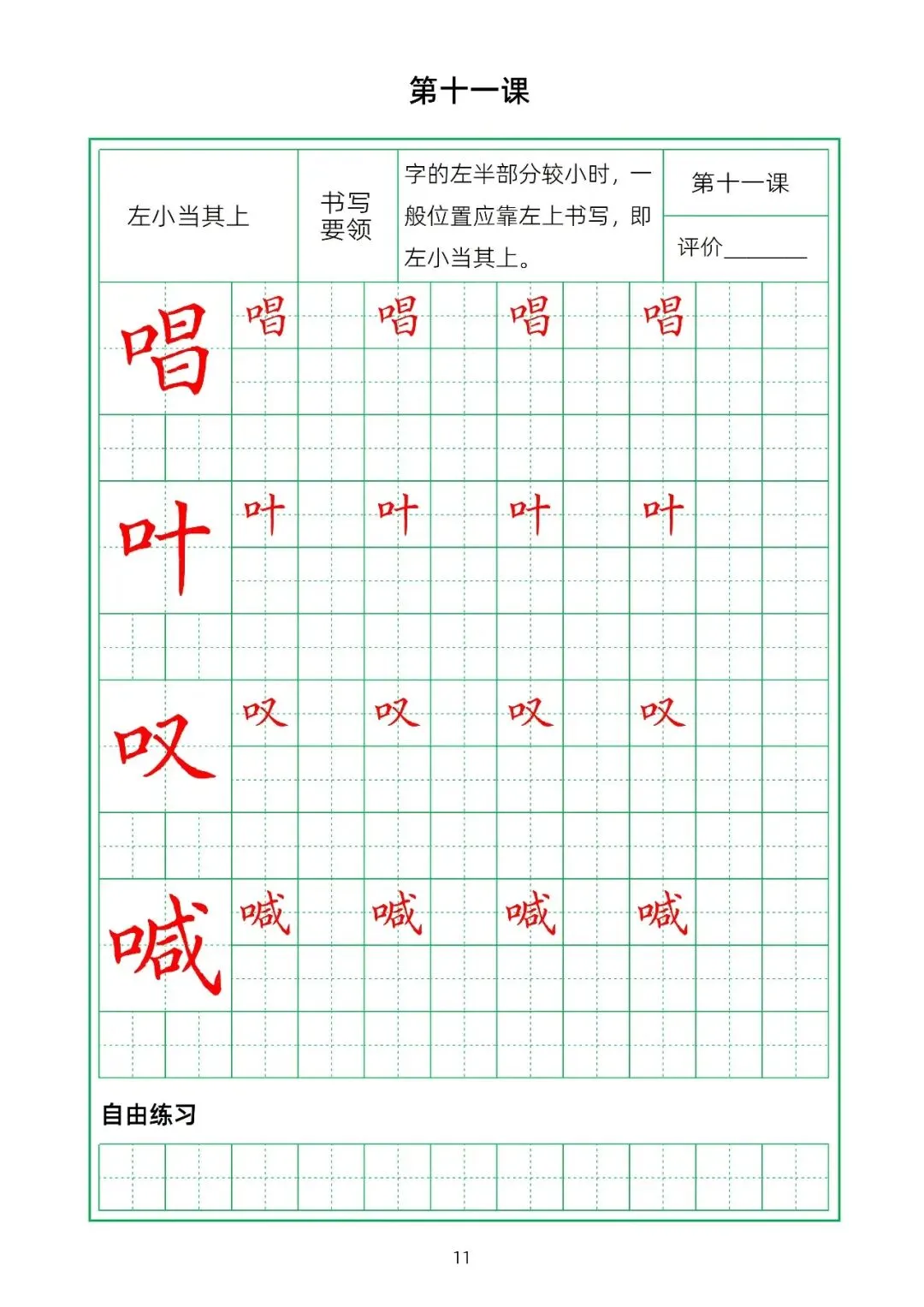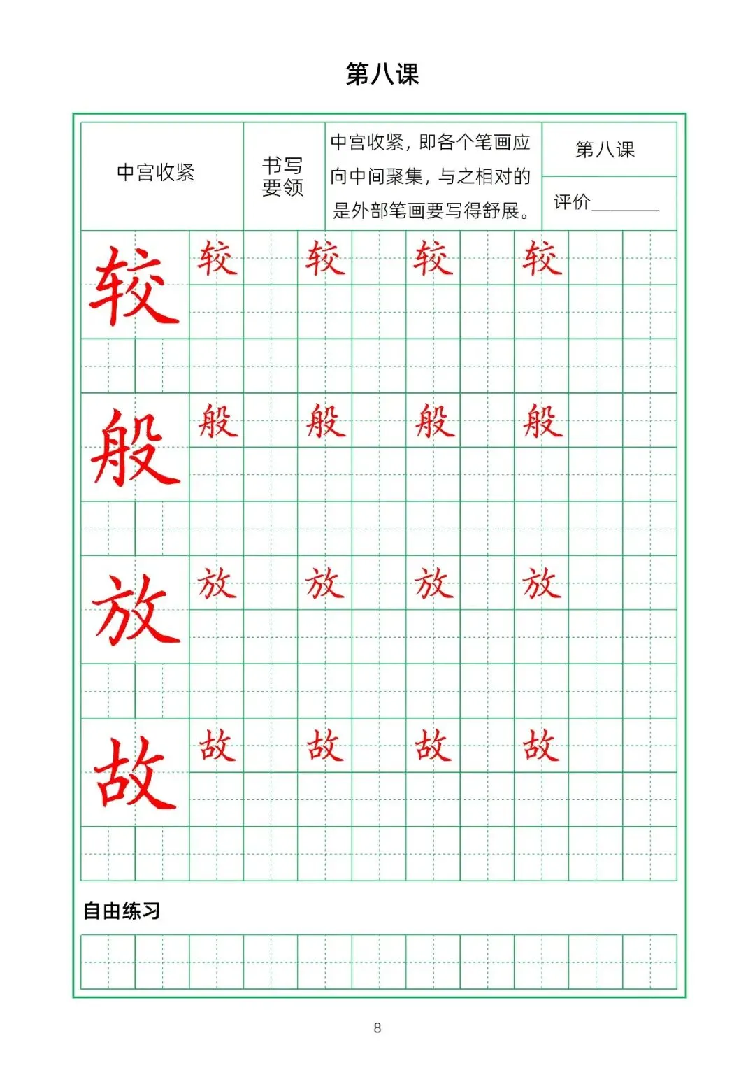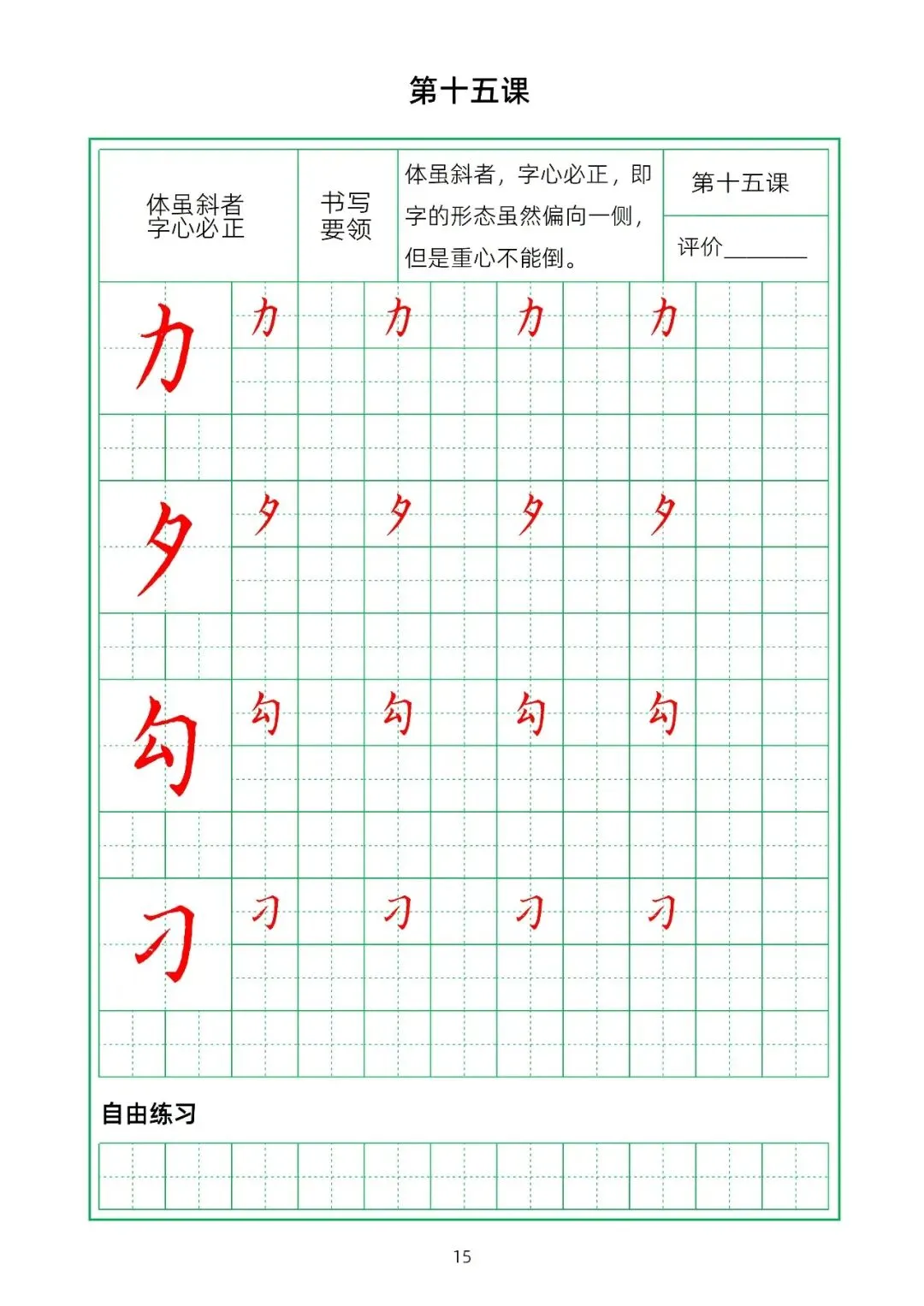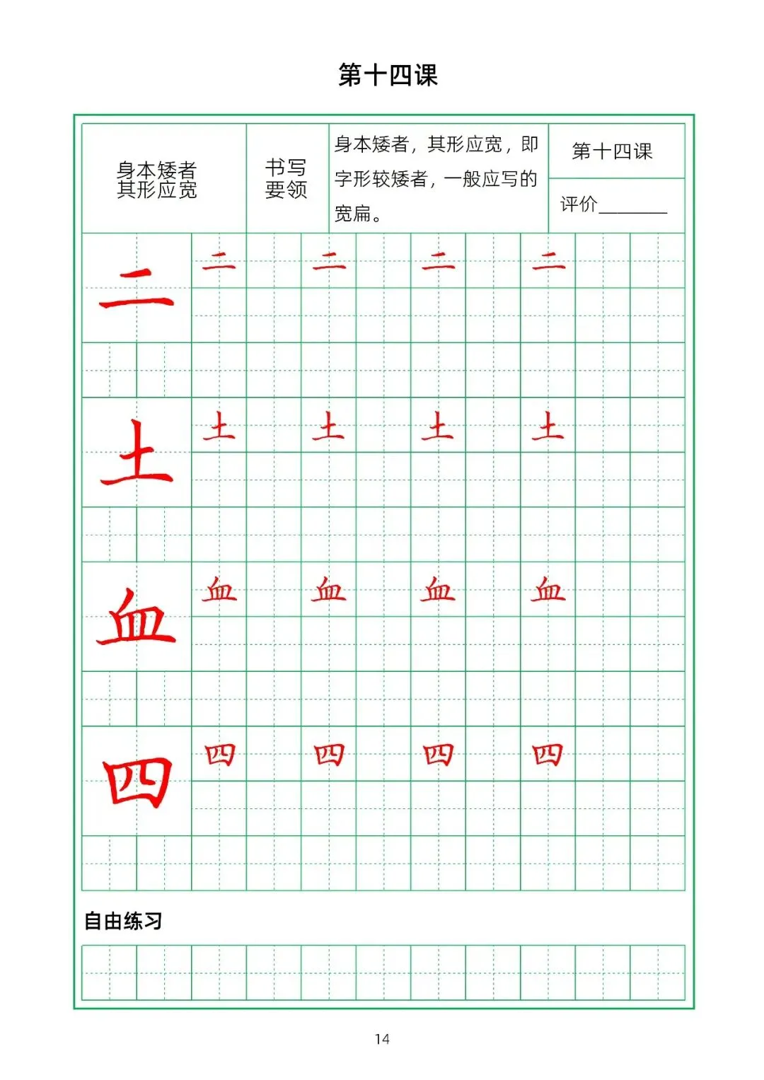 田字格硬笔楷书教材,间架结构,PDF免费下载(含基本笔画、偏旁部首链接)