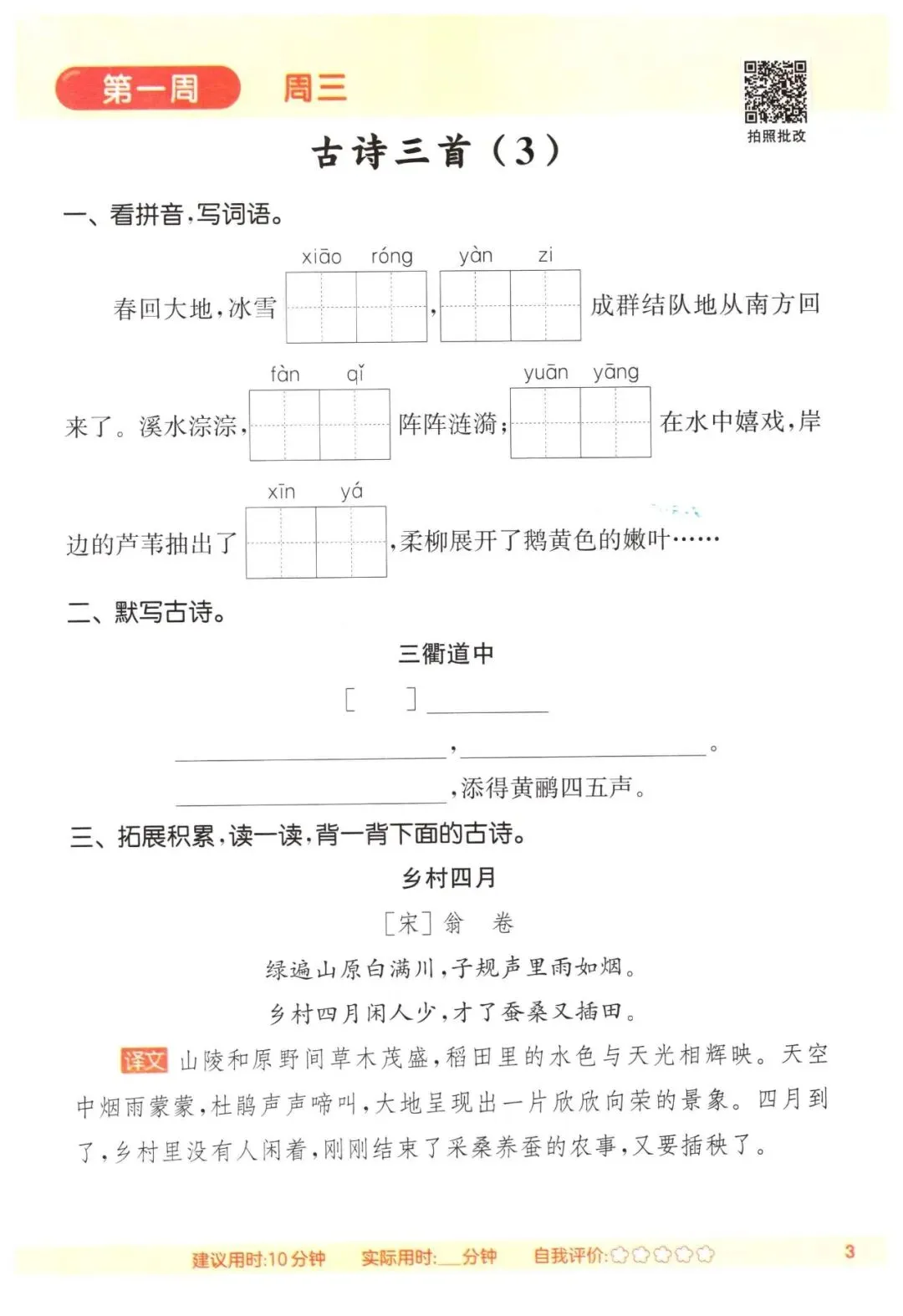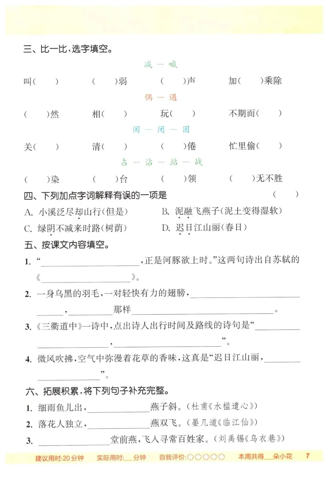 三年级语文下册《默写能手》(领高清PDF打印版)