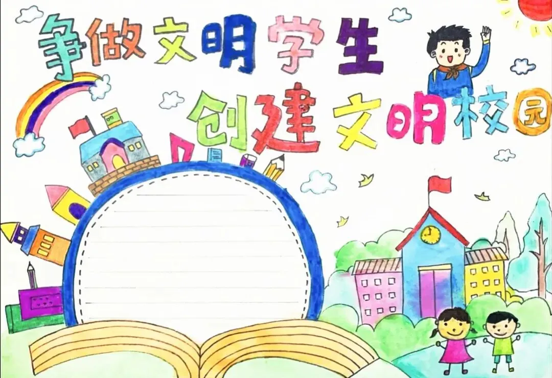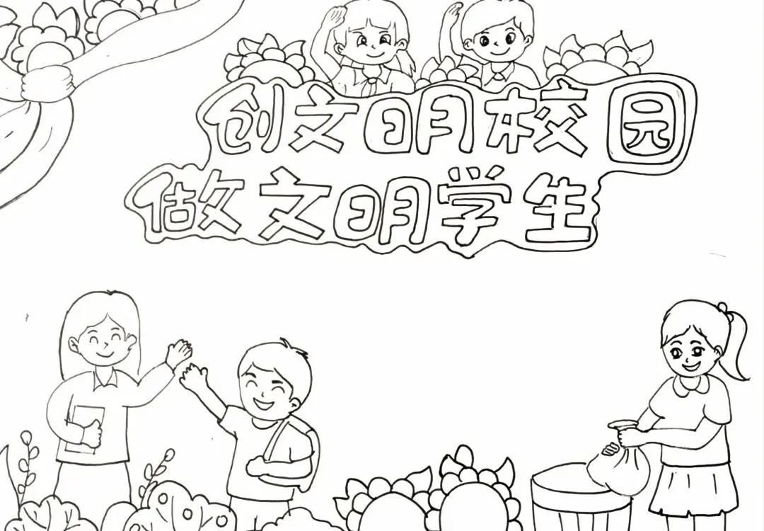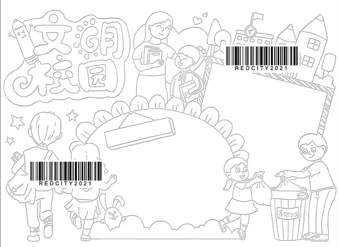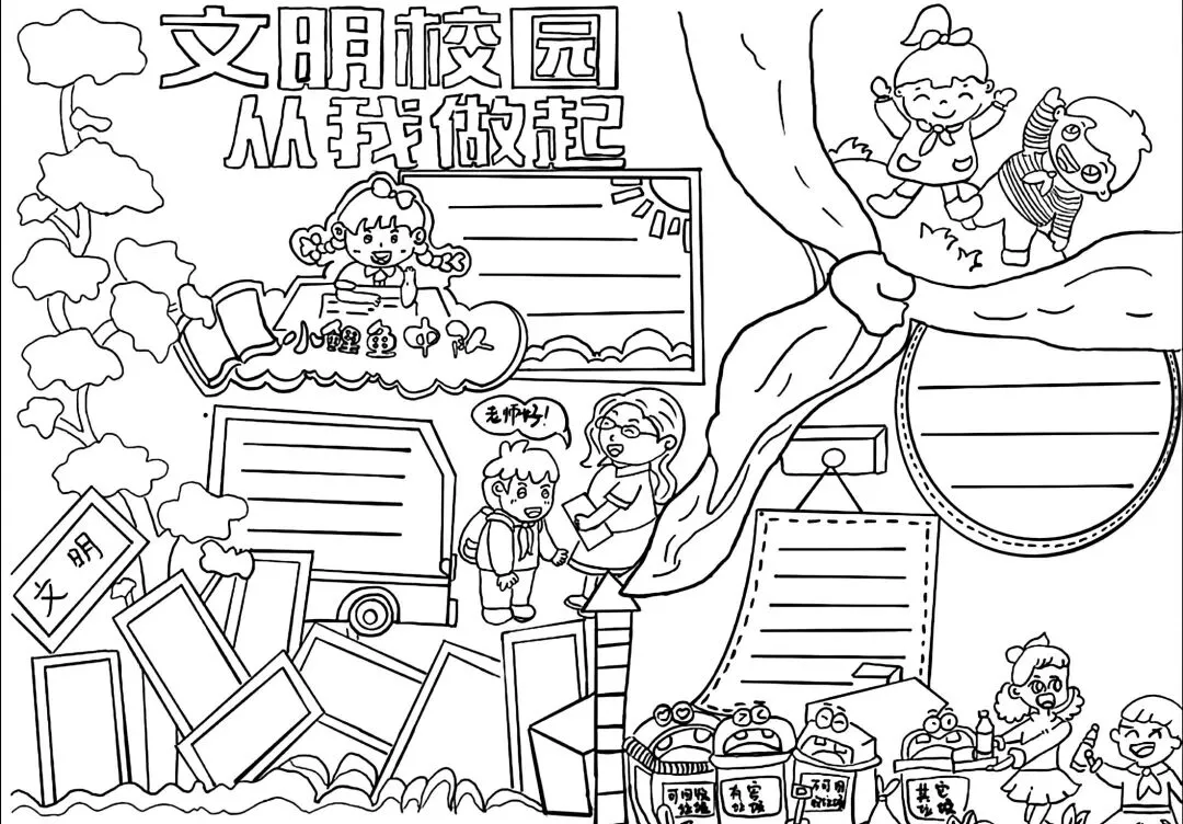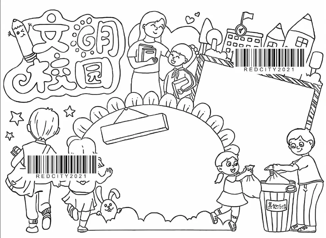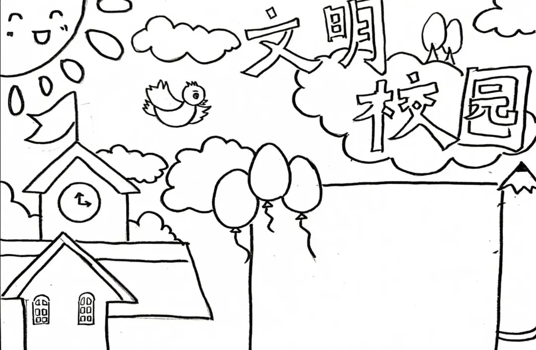 文明校园手抄报超全电子版高清线稿可打印