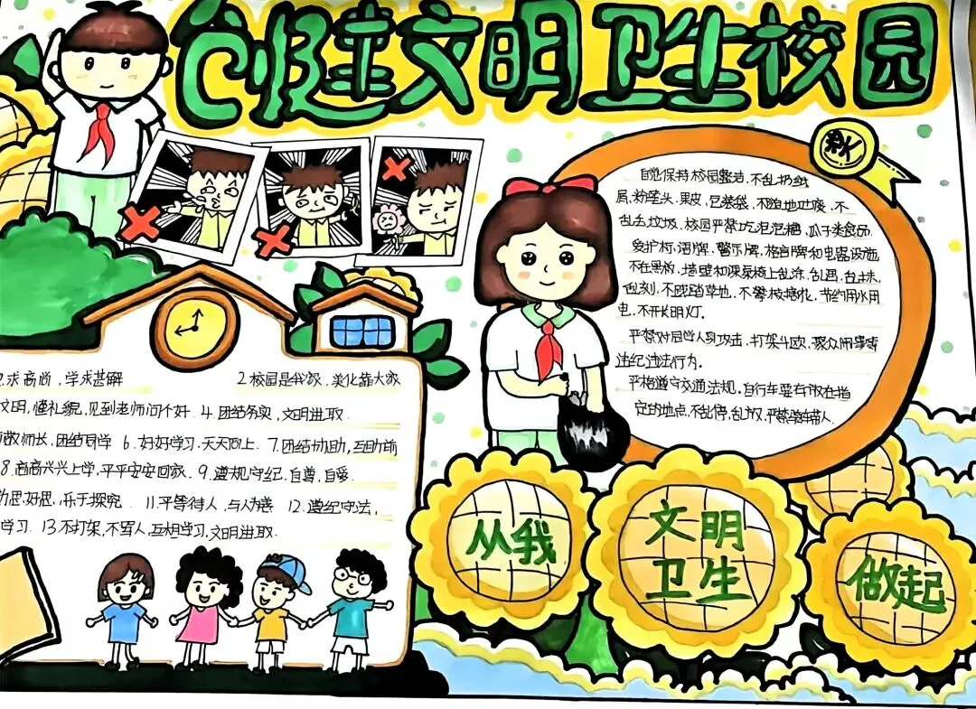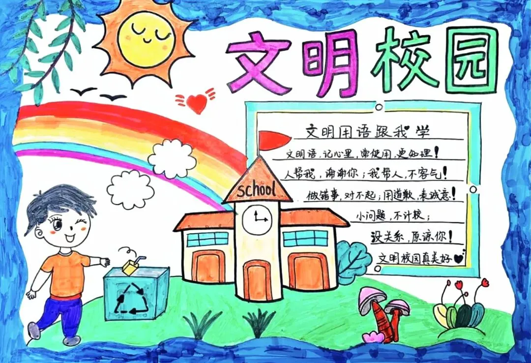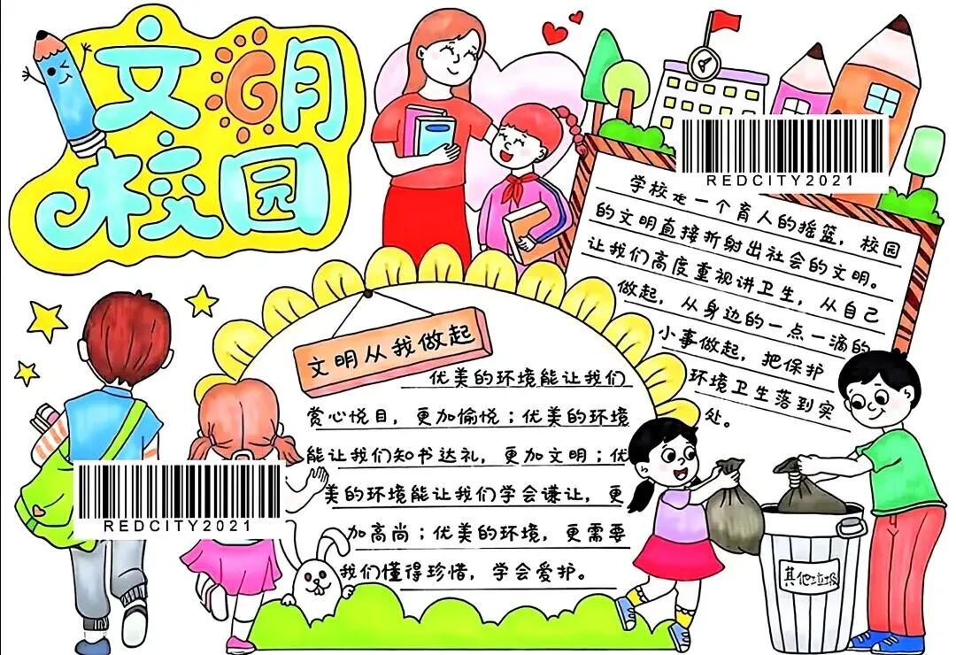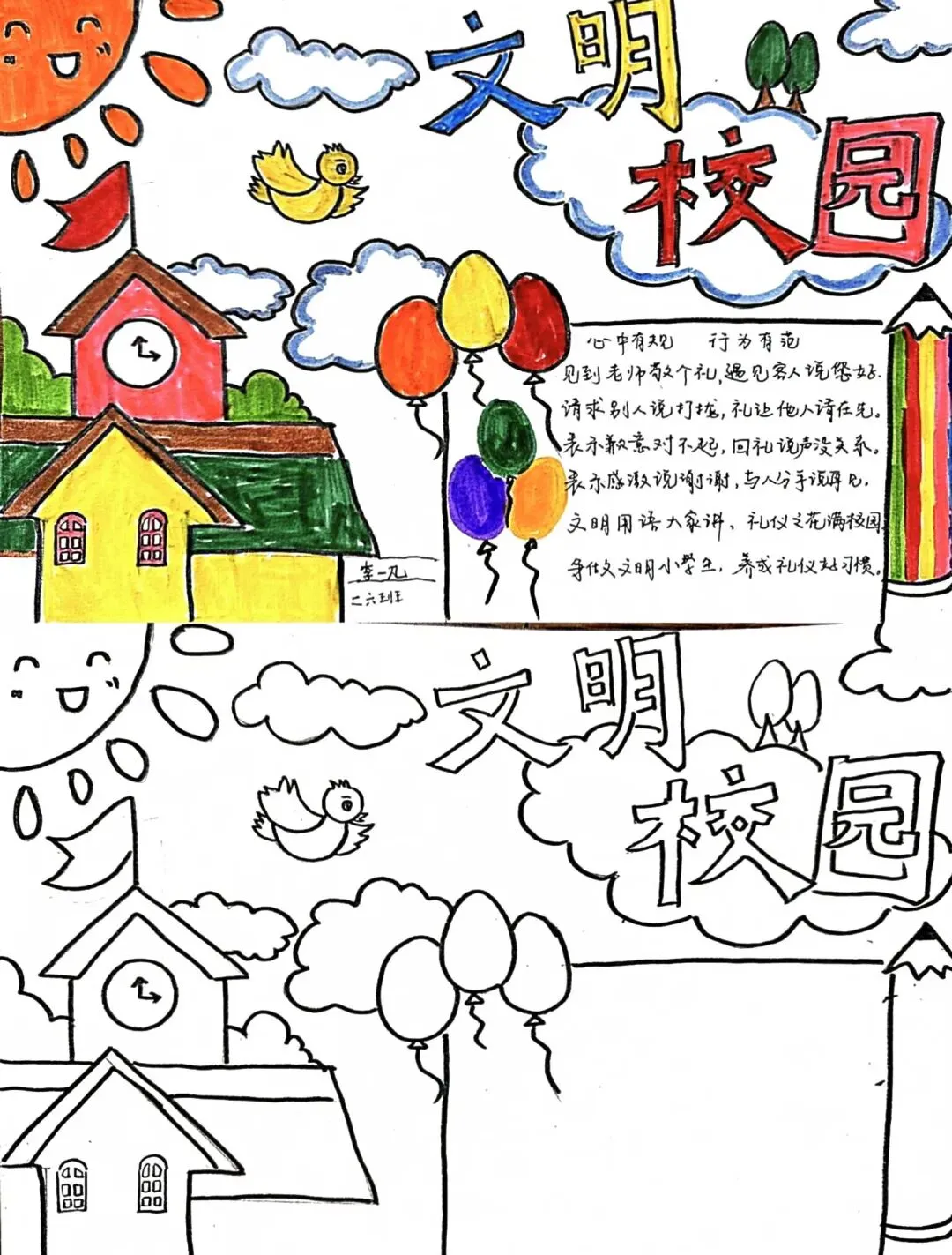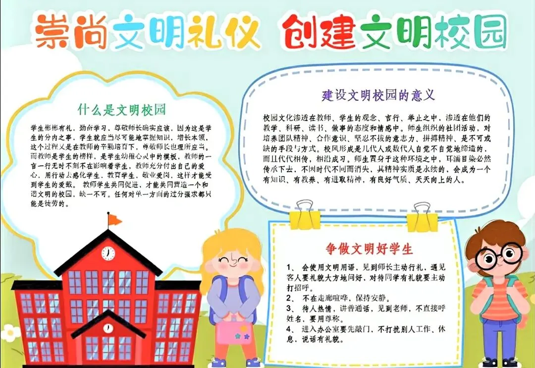 文明校园手抄报超全电子版高清线稿可打印