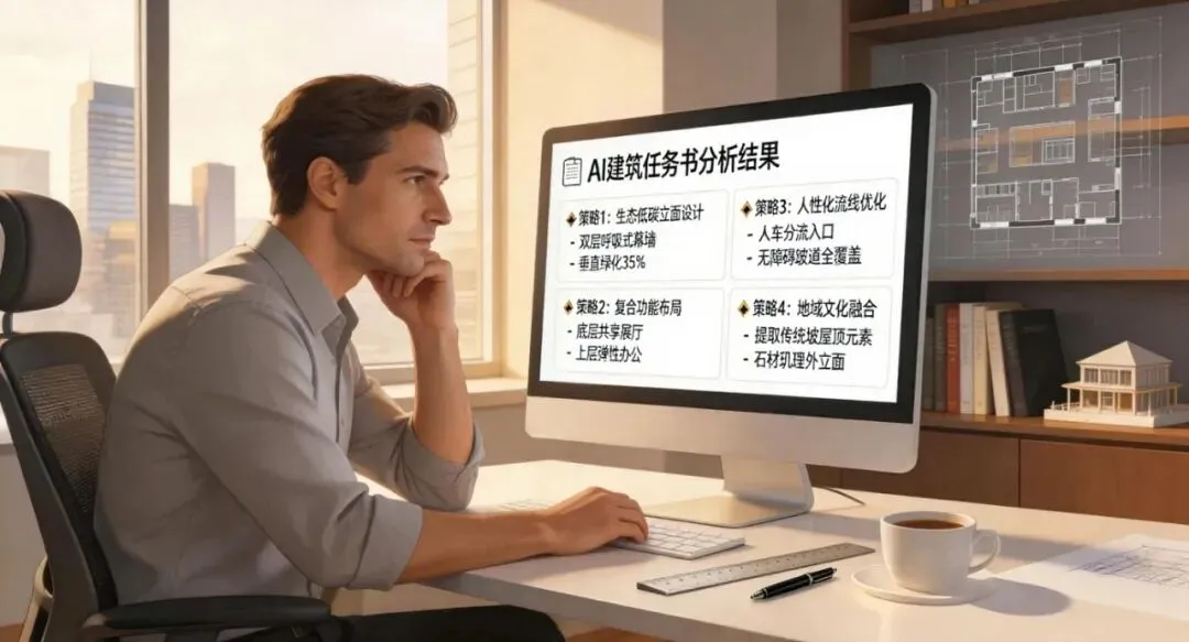 DeepSeek现在能做的事:把这份模糊的任务书扔进去,它帮你提取关键指标(容积率、建筑密度、功能配比),生成初步设计策略报告。某设计院实测,一份5000字的任务书,3分钟出12个方向的分析报告。