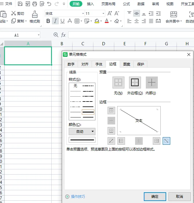 3. 先选好适配的线条样式,点击窗口里的斜线图标,最后点击确定,斜线就完美添加完成了。