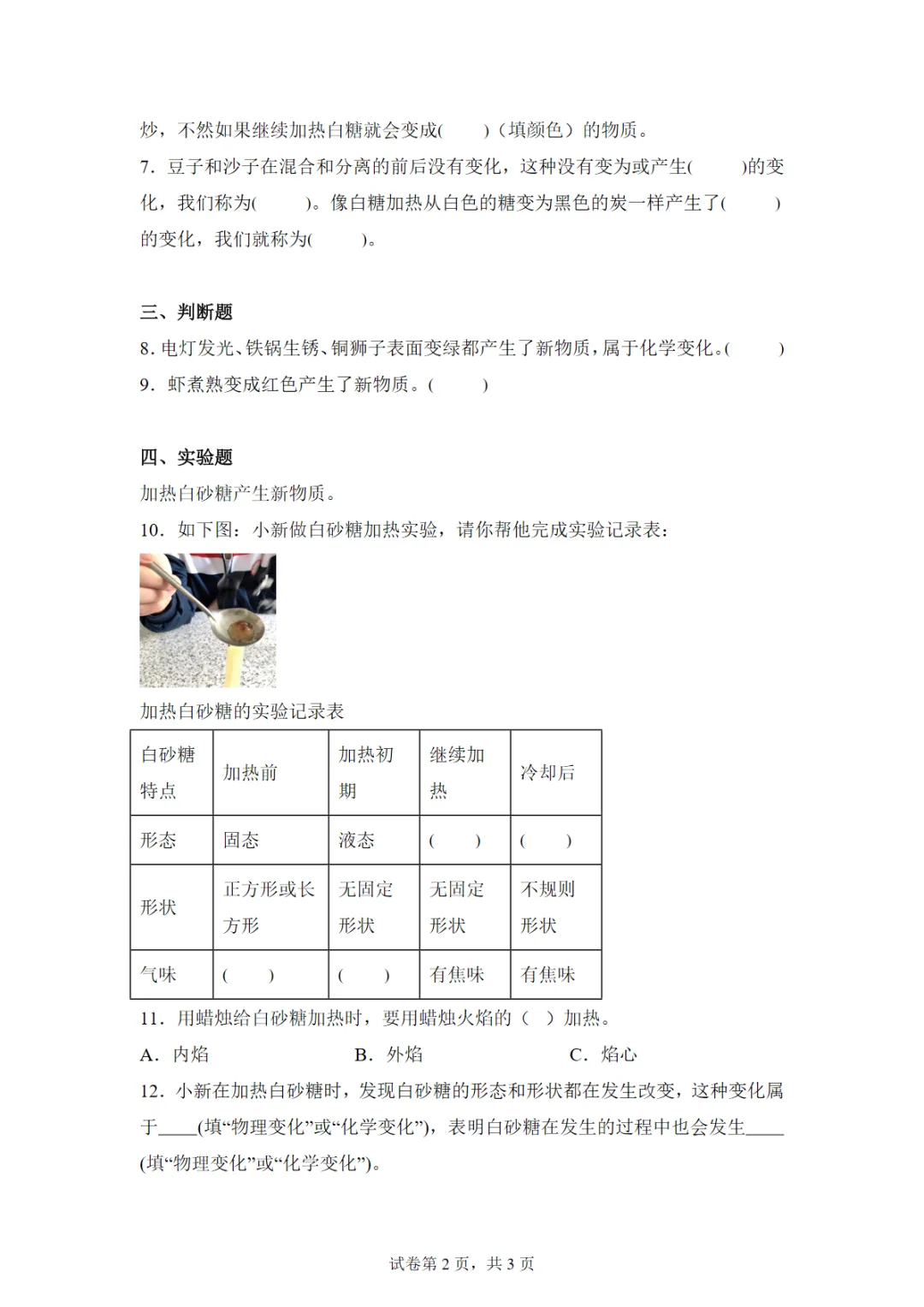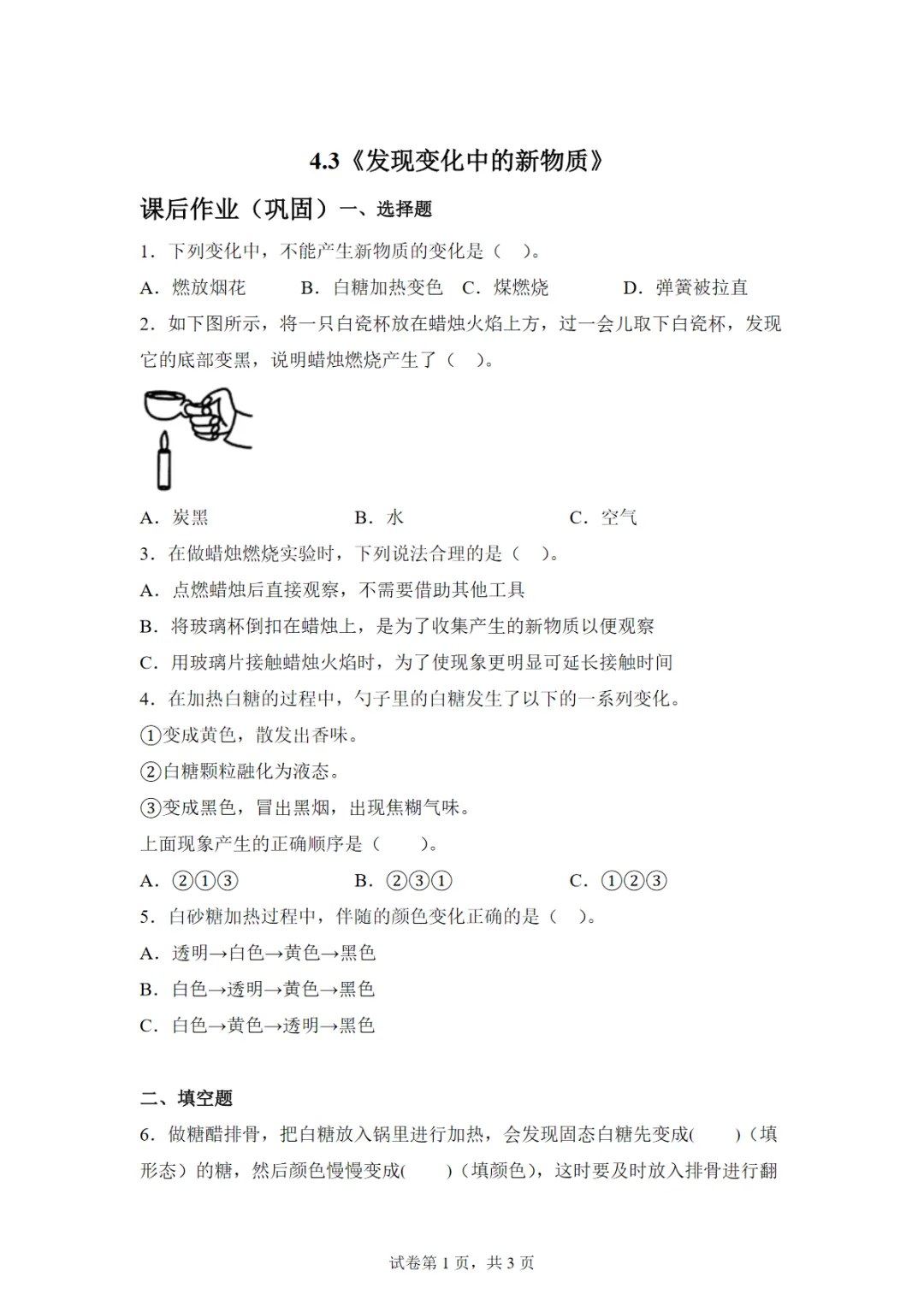 【免费下载】【教科版】新六年级下册科学4.3《发现变化中的新物质》课后作业(巩固),可打印