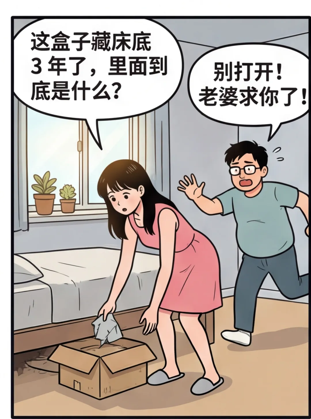 搞笑漫画:老公床底藏了 3 年的盒子,打开后我瞬间泪目