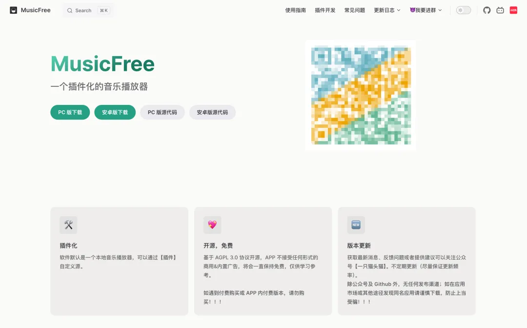 项目网站,有详细介绍和所有版本的下载链接https://musicfree.catcat.work/