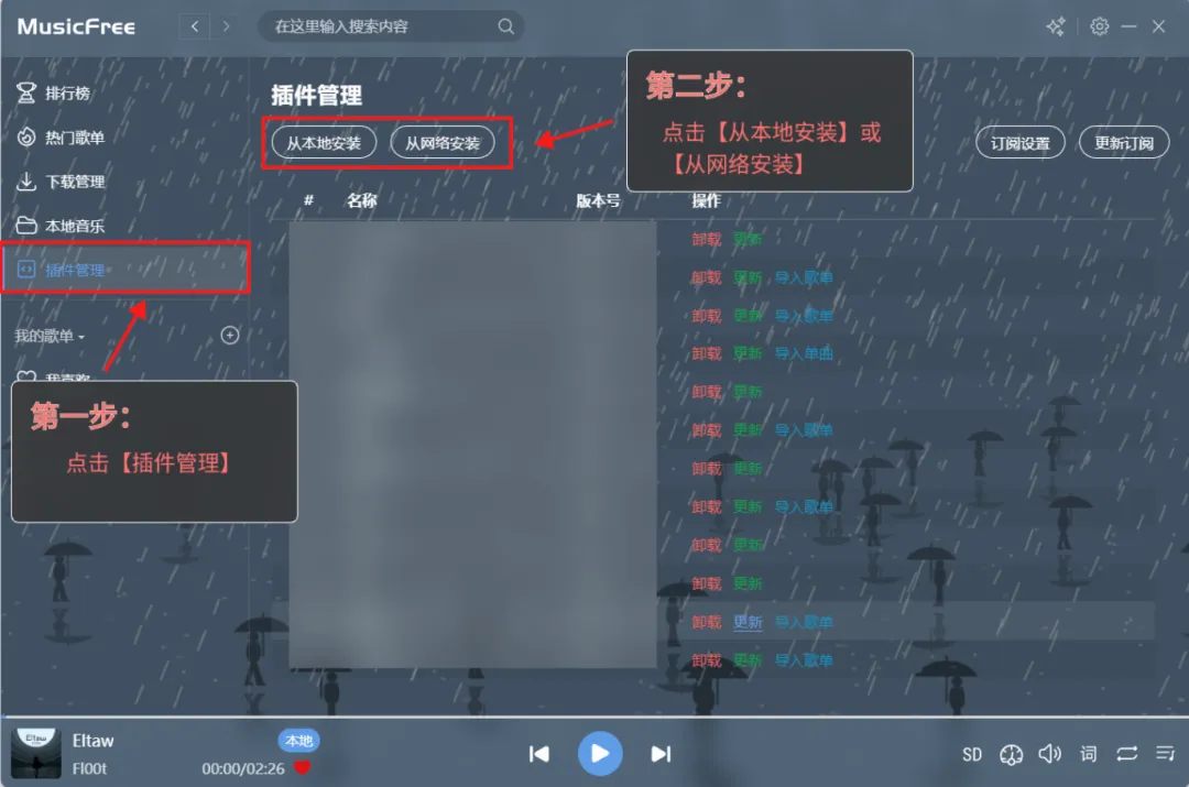 MusicFree 本身只是一个播放器框架,需要安装插件才能播放音乐,具体安装步骤如下: