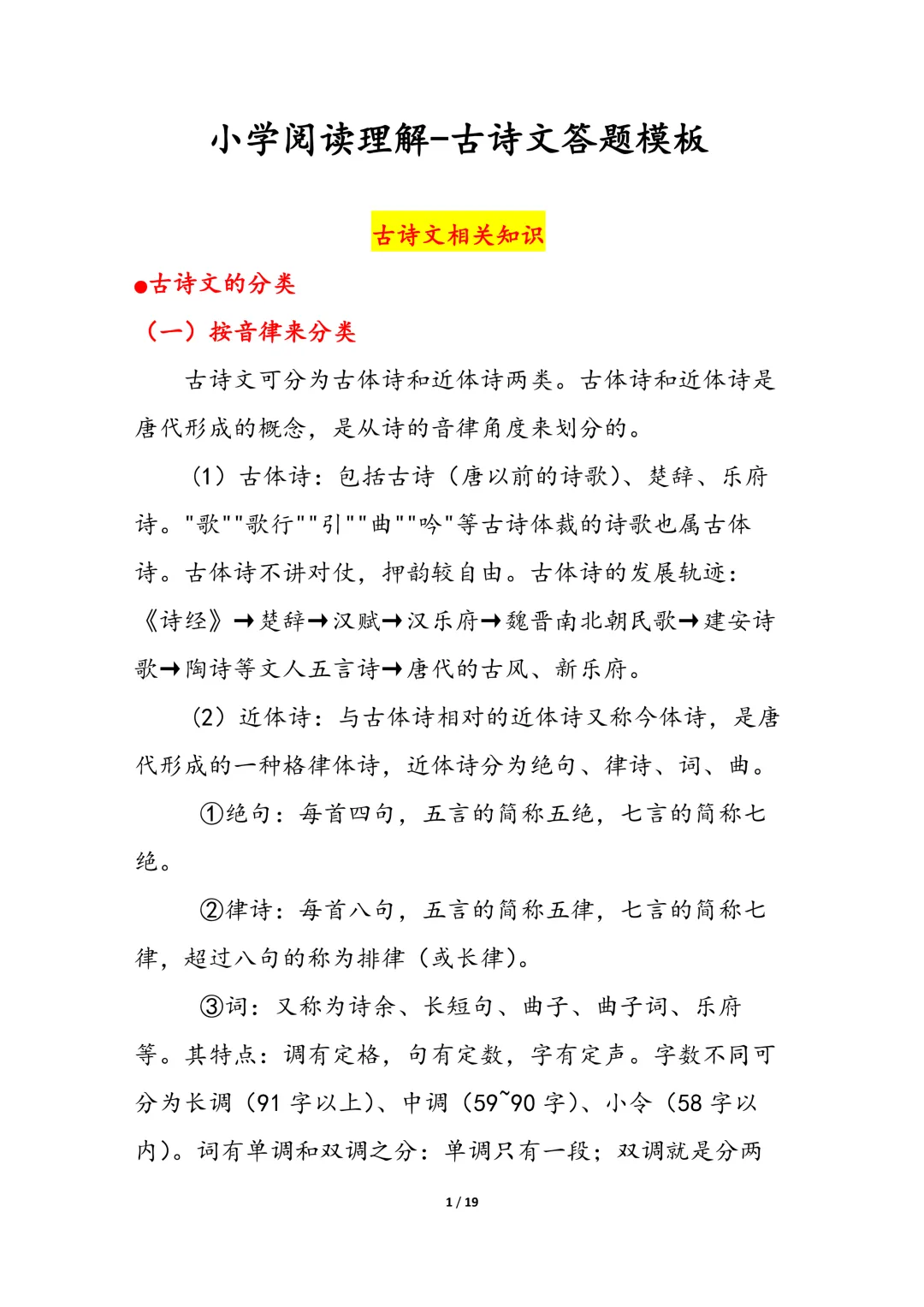 小学语文阅读理解-古诗文答题模板(电子版可打印)